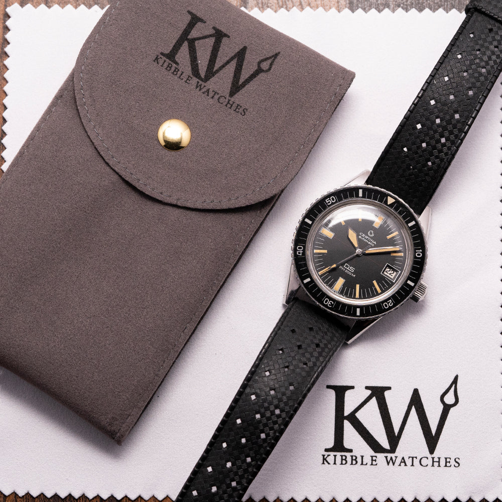 This watch is sold as "Watch Only" and therefore comes with no original Certina box or paperwork. The watch comes paired on a period correct 19mm Tropic rubber strap with its original Certina buckle. The watch is from Circa. 1966 and is sold in worn vintage condition, but the overall very fair condition with its fantastic all-original crisp dial and Bakelite insert as you can see from the photographs. The watch comes with our 12-Months NON-Waterproof Warranty.