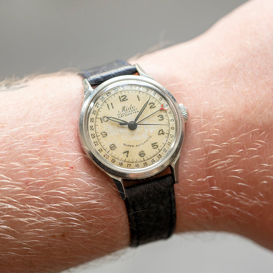 1940s and 1950s Mido had some of my favourite case designs with a smaller, compact design that packs an absolute punch on the wrist, thanks to beautifully sculpted lugs and typically a larger 'Brevet' crown. Mido Datometers are incredibly rare in the market today, and when good ones do come up, people ask a lot for them and rightfully so. This dial has seen a life of use but still retains all of its vintage charm, and I love the fact that you can faintly see the 'roulette' pointer date track showing subtle signs of even numbers being a different shade to the odds if you look closely. I have had this watch for 3+ years and haven't worn it anywhere enough in that time, but after writing this, I'm going to make more of an effort to pull this one out of the safe and give it the wrist time it deserves.