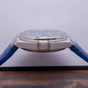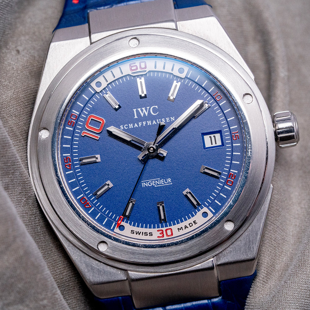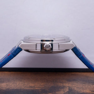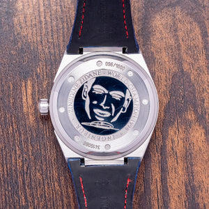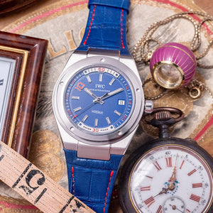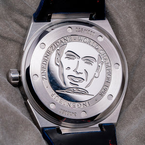 This IWC Ingenieur was produced to celebrate 'Man of the Match' Zinedine Zidane in the 1998 FIFA World Cup when France beat Brazil. For those football fans out there, this will no doubt be an iconic memory and this is a fantastic limited edition to represent that. For those like me, who aren't the biggest football followers, thankfully the design speaks for itself outside of the limited edition connection alone. The deep blue dial is mesmerising with the subtle hints of red, the matching blue strap is a great touch. I would not hesitate to book an appointment and see this one for yourself!