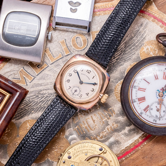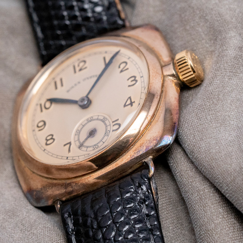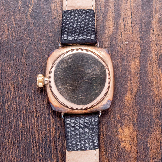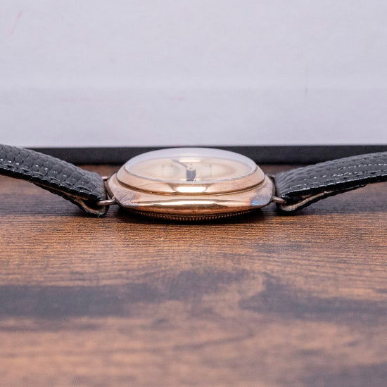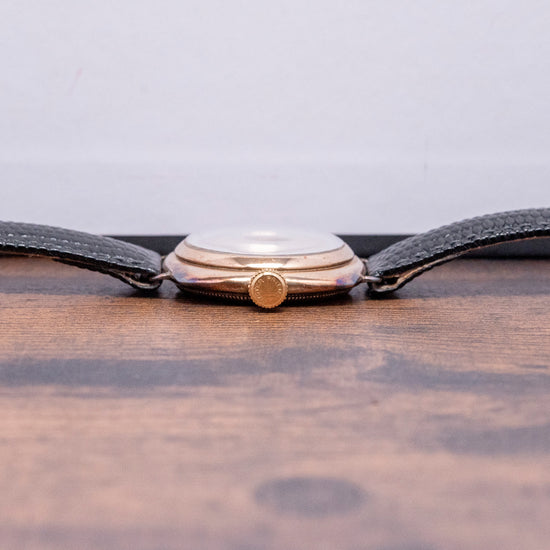 This watch is sold as "Watch Only" and therefore comes with no original box or paperwork. It comes paired with an 18mm well-suited leather strap. The watch is from Circa. 1934 and is sold in worn, vintage condition, with an even patina, and an incredible “Gold Burn” on the case, as you can see. The watch comes with our 12-Months NON-Waterproof Warranty.
