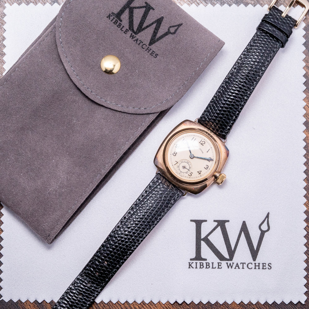 It is always a great day when a vintage Rolex Oyster Cushion Case lands on your desk, and this lovely 9ct gold example is brilliant, especially with the lovely 'gold burn' that has developed on the case. This often develops from years of not being used, and the gold oxidises, it is easy to remove, but the almost rainbow to black colouration it provides is amazing in my opinion and worth leaving as part of its story. This reference 678 dates to 1934 and comes in a modest 31.5mm 9ct yellow gold cushion case. it wears perfectly and is well worth trying on for yourself if you are unsure, but be warned, you will likely walk out with it on your wrist!