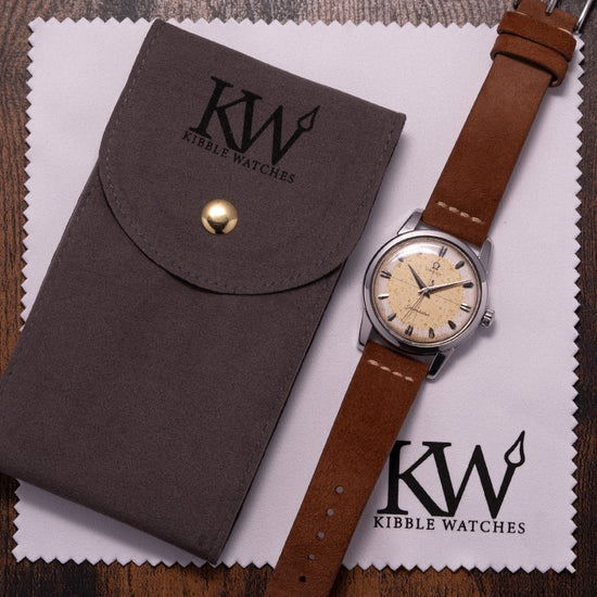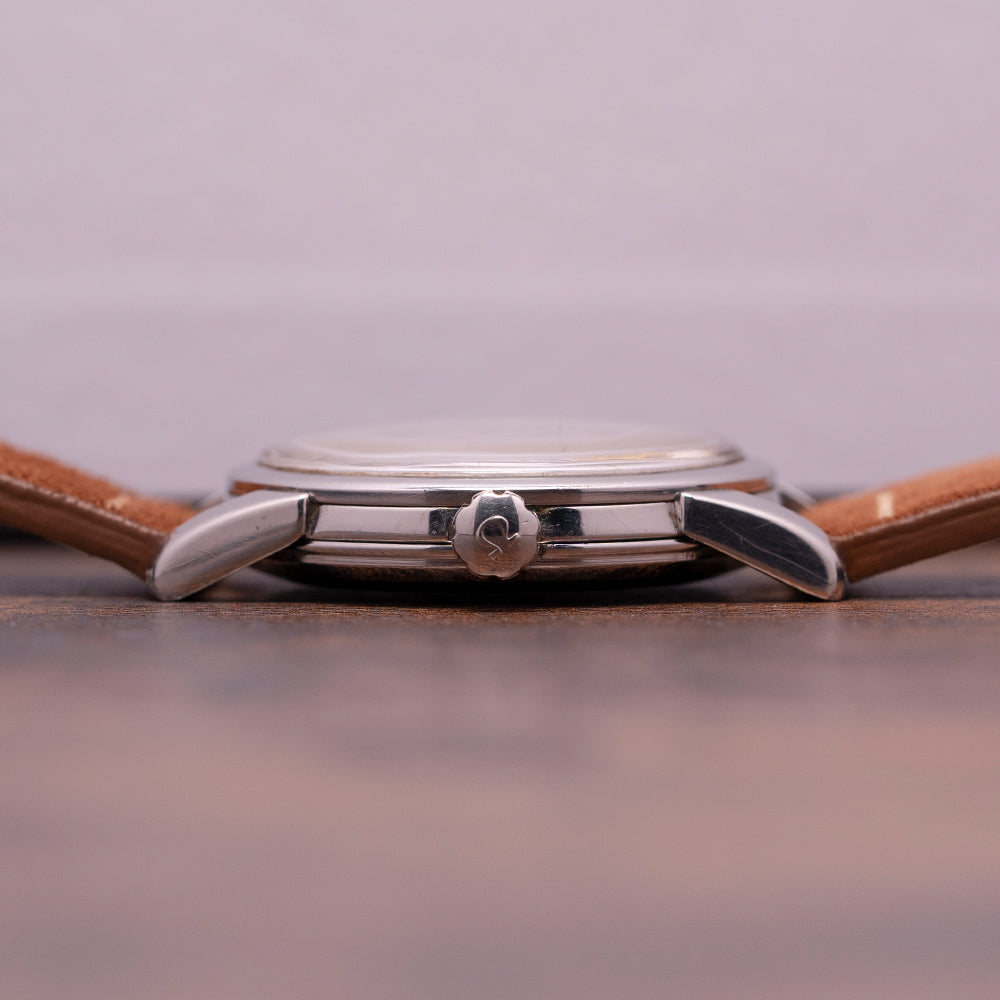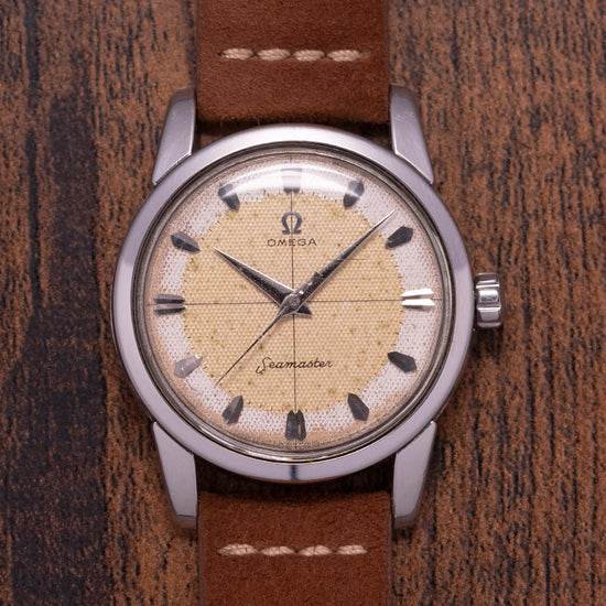 This watch is sold as "Watch Only" and therefore comes with no original Omega box or paperwork. The watch comes paired with a well-suited brown 18mm vintage-style suede strap. The watch is from Circa. 1956 and is sold in worn vintage condition, with marks that can be seen, the crystal is the original Omega signed crystal and has marks, this can be replaced with a non-Omega crystal on request. The watch comes with our 12-Months Non-Waterproof Warranty.