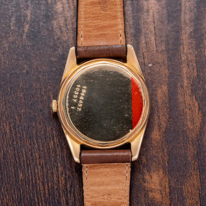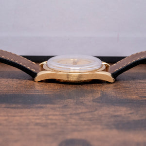 This watch is sold “Watch Only” and therefore comes with no original Universal Geneve box or papers. The watch comes paired with a well-suited aftermarket 18mm brown leather strap. The watch is from Circa. 1956 is in very fair vintage condition for its age. It also features an 18ct Yellow gold Universal signed crown, as you can see from the photographs. The watch comes with our 12-Months NON-Waterproof Warranty.