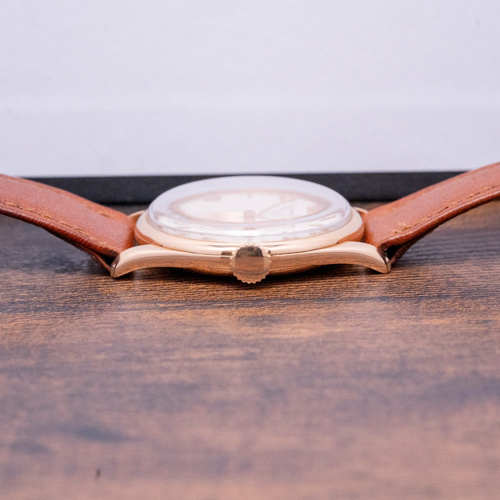 This watch is sold “Watch Only” and therefore without its original box or paperwork. The watch comes paired with a well-suited 19mm leather strap and an 18ct Pink/Rose Gold pin buckle, stamped with its relevant hallmarks. The watch is from Circa. 1960 and is sold in worn vintage condition, but overall very fair condition for its age, with signs of wear and patina, as you can see from the photographs. The watch comes with our 12-Months NON-Waterproof Warranty.