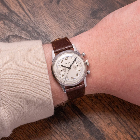Gallet is a brand often overlooked in the vintage watch world, a company with incredible history, beautiful and timeless designs and overall insane value! This Multichron 45 from the 60s is the perfect example of that, perfectly proportioned at 35mm it will work on anyone's wrist and featuring a Valjoux 7730 it is a workhorse! Snap this up whilst you can as I have no idea when the next Gallet will come across my desk!