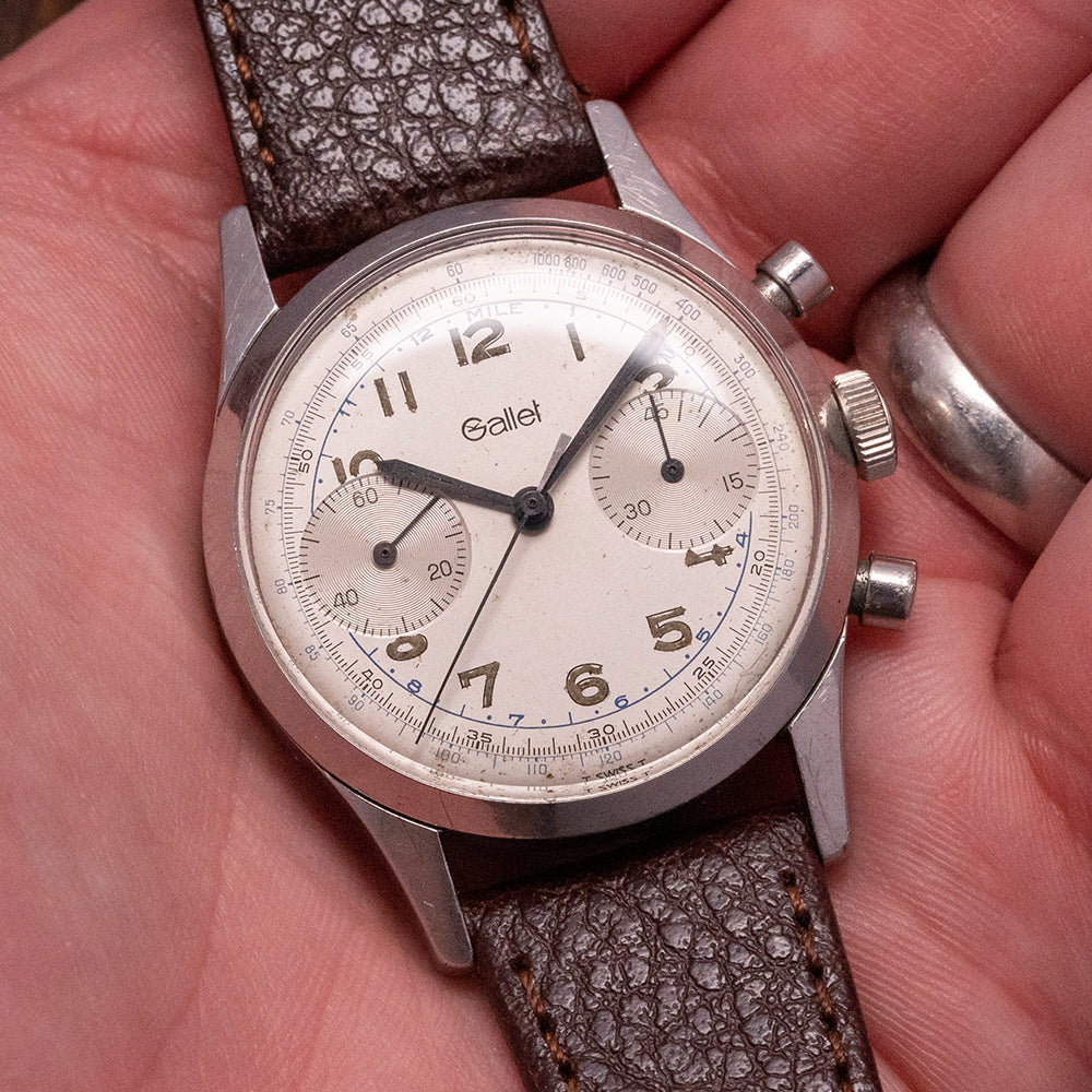 Gallet has a history going back as far as 1466 with references to a Gallet family making clocks. But officially Gallet says they were founded in 1826 when the company was registered by Julian Gallet. At that time it was called Gallet & Cle. They are recognised as the Masters of the Chronograph. They are famous for creating 24-hour watches, versatile multi-functional chronographs that were used by many professions including doctors with a pulsation scale, a yachting scale used in the Regatta races, Tachymeters and Telemeters used in motorsport and various military applications.