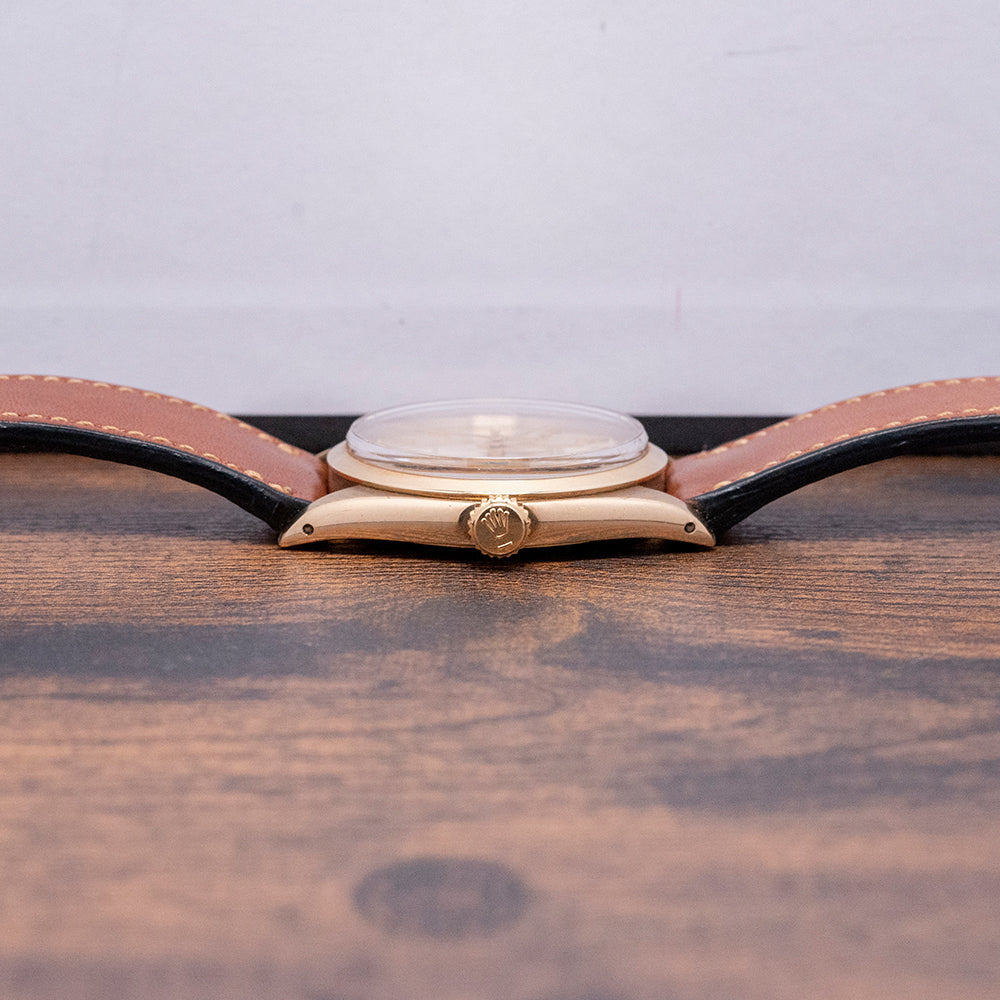 As the proud owner of a Rolex 6694, I do feel these early 4-digit Rolex's epitomise what Rolex intended to be and the era they did it right, don't get me wrong, a 5-digit Rolex is often more practical, but there will always be the additional charm you get with a 4-digit. And that brings us along to this surprisingly rare 9ct yellow gold Rolex Oyster Precision, reference 6426, coming in the perfect 34mm case that has aged beautifully along with its dial and handset. Powered by the manually wound Rolex Calibre 1215, you get the added bonus of being under 10mm thick, so it wears effortlessly on the wrist. I would not hesitate to add this vintage gem to your collection today, whilst you can!