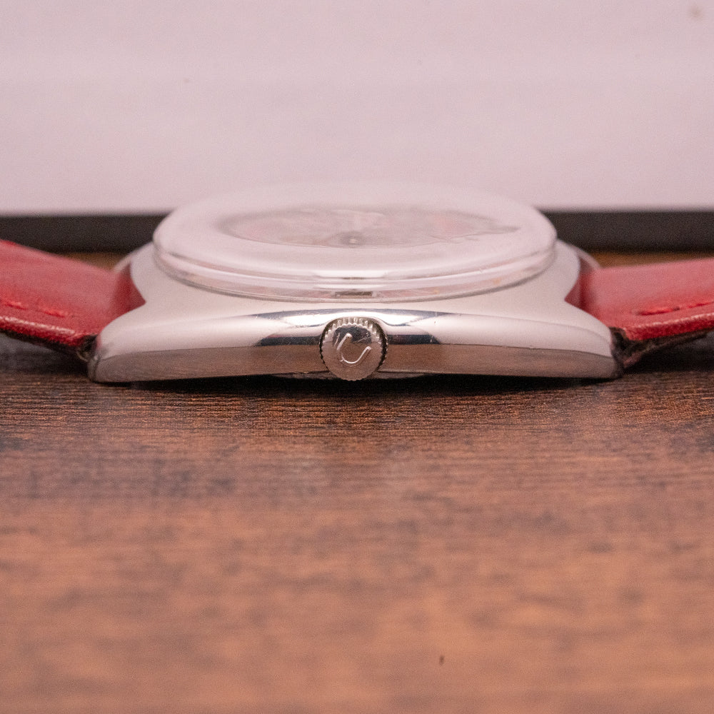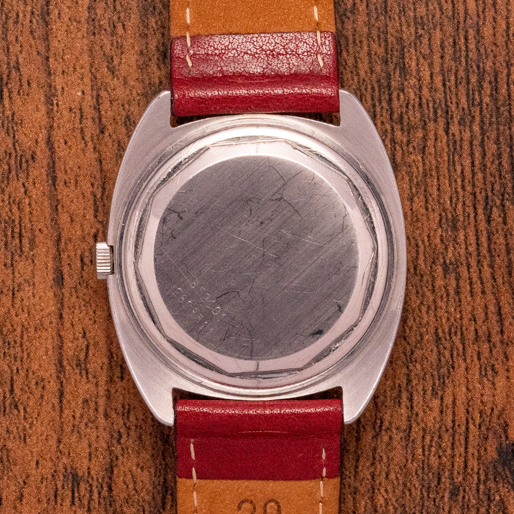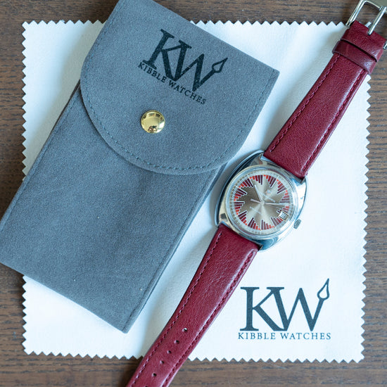 This watch is sold as "Watch Only" and therefore comes with no original box or paperwork. The watch comes paired with a well-suited 20mm red leather strap. The watch is from Circa. 1967 and is sold in worn vintage condition, but overall fair condition as you can see from the photographs. There are a few marks on the underside of the crystal and some debris on the logo. The watch comes with our 12-Months NON-Waterproof Warranty.