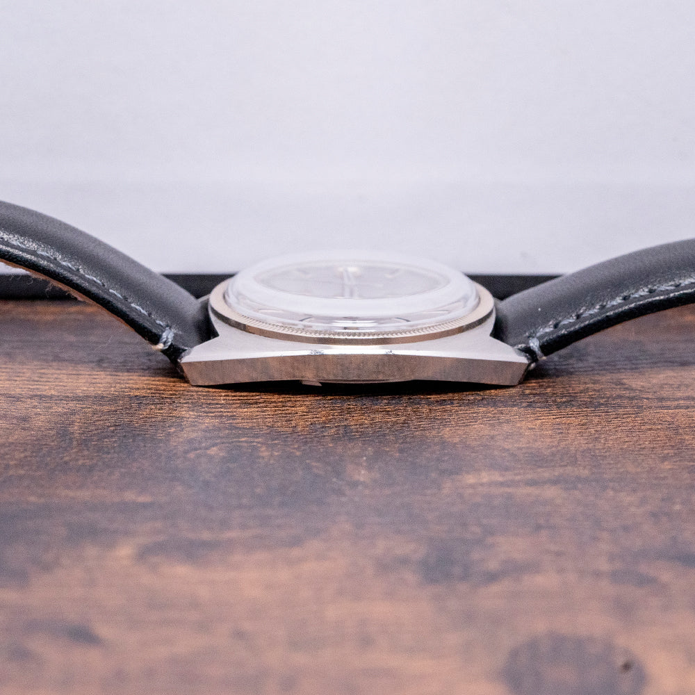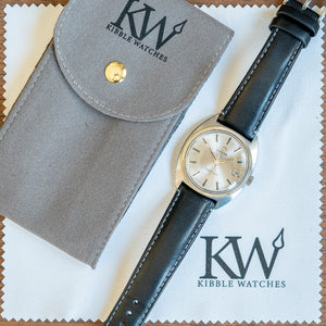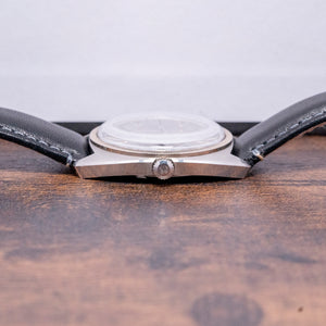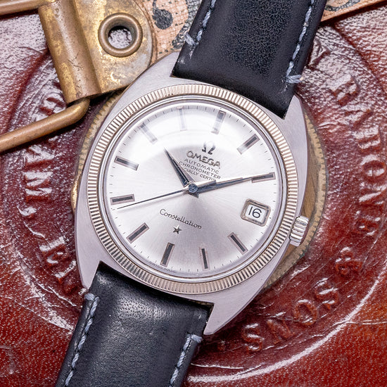 Here we have a classic 1968 Omega Constellation C-Case 168.027 with a satin-brushed and polished 34.5mm stainless steel C-shaped case comfortably sitting on your wrist like a cushion. Omega first introduced the Constellation in 1952, at the time, it was Omega's flagship timepiece; the first models had a Cal. 354 bumper movement in them. Later, in 1955, Omega introduced the Automatic Cal. 50x, followed in 1959 by the Cal.55x (no date) and 56x (date) versions. Many of the Constellations came with pie-pan dials, diamond indexes, and fancy lug configurations, and all the gold Constellations of that time had the Observatory of Geneva's hand engraved on the back. The stainless steel and stainless steel/gold versions had a gold medallion on the back with the Observatory of Geneva; the eight stars above the Observatory stand for the many exploits of Omega in the world Chronometer competition, celebrating the fact that all Constellations are Chronometer Certified. In 1964, Omega introduced its first Constellation with the “C” case; due to the case resembling two mirrored Cs, the “C” case was a modern move away from the popular round Constellations of the 1950s. The curvaceous flanks have a polished bevel edge leading to a lug-to-lug length of 40.5mm and a case thickness of 10mm, ensuring a comfortable fit on your wrist. An attractive slim white gold fluted bezel holds the domed crystal above a silver dial with an outer minute track surrounding applied chamfered edge baton indexes that play with the light as you rotate your wrist. At 3 o’clock, a framed date window. Slender Dauphine hands are complemented with a tapered centre second hand. At 12 o’clock, an applied Omega and “Automatic Chronometer Officially Certified” printed in black. Below at 6 o'clock, “Constellation” and an applied star complete this sophisticated dress watch. On the reverse, there is a screw-down case back with an embossed observatory and eight stars, inside an automatic Omega Cal. 564, 24 jewels, 19,800 beats per hour. The watch comes paired with a suitable 19mm leather strap and a pin buckle.