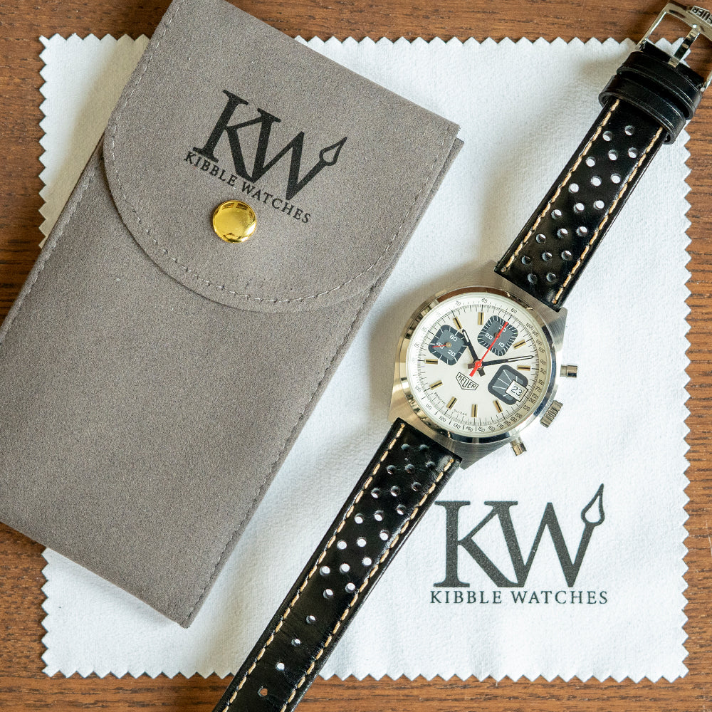 This watch is sold “Watch Only” and therefore comes without its Heuer box or papers. The watch comes paired with an 18mm leather strap and signed Heuer pin buckle. The watch is from Circa. 1970s and is in worn, vintage condition, as you can see from the photographs, but overall is in fantastic vintage condition for its age, close to new-old-stock. The watch comes with our 12-Months NON-Waterproof Warranty.