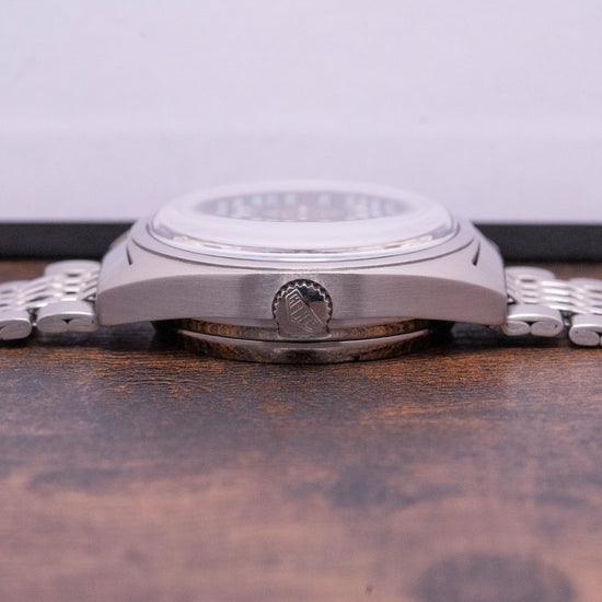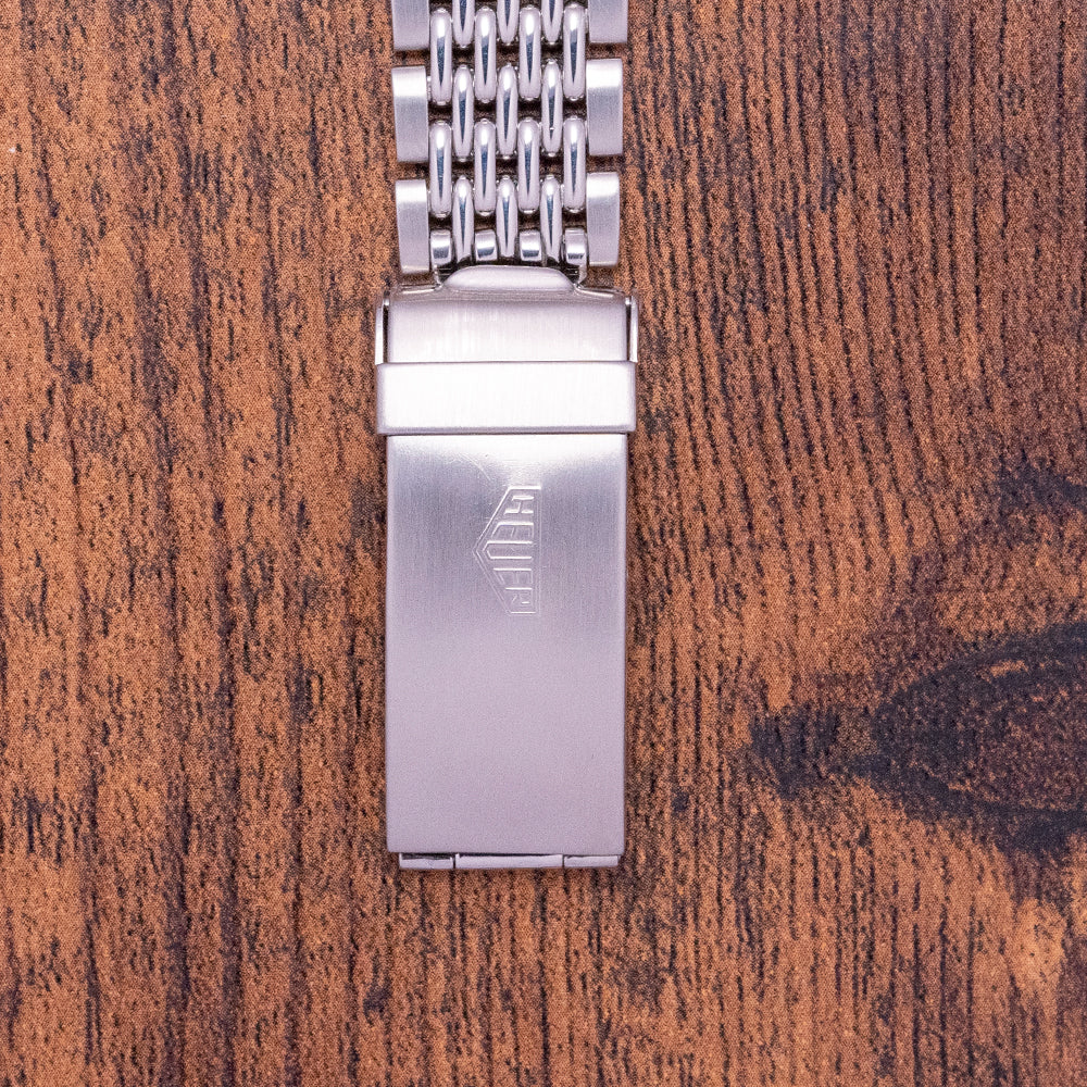 This watch is sold with a Tag Heuer service case but no original papers. The watch comes paired with an original 19mm Gay Freres "Beads of Rice" stainless steel bracelet with a signed folding clasp and fliplock, this bracelet will fit up to a 7.5inch wrist. The watch is from Circa. 1971 and is in worn, vintage condition, as you can see from the photographs, but overall in fantastic vintage condition for its age. The watch comes with our 12-Months NON-Waterproof Warranty.