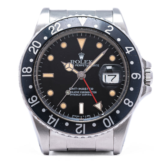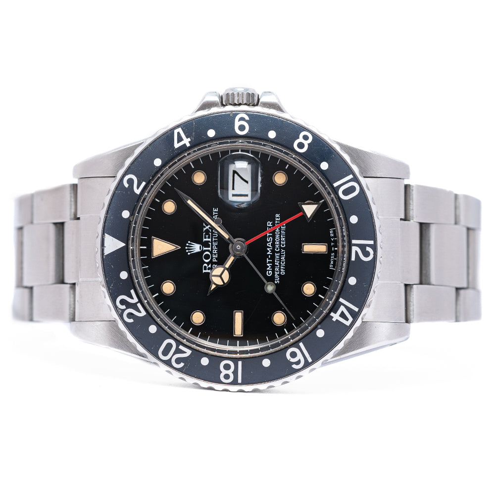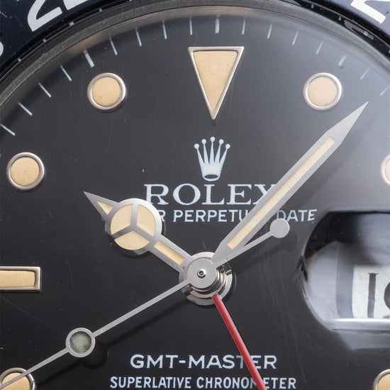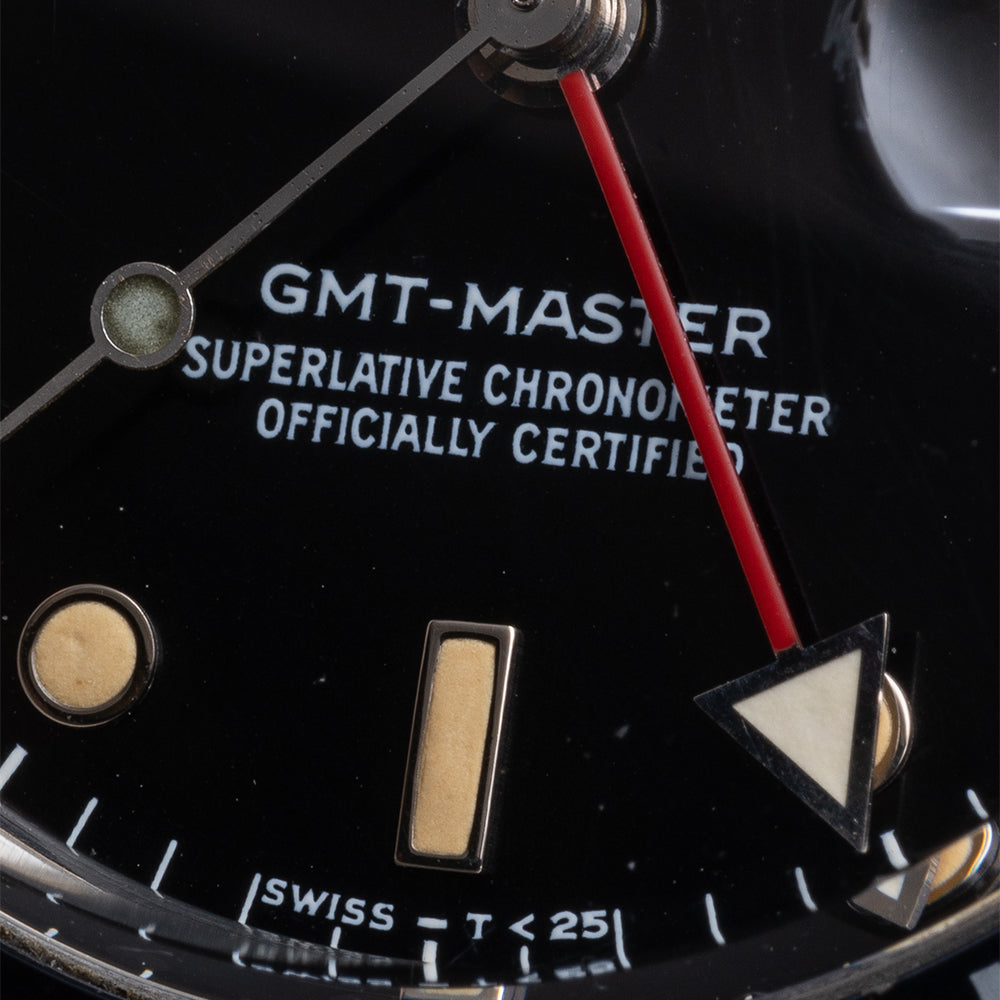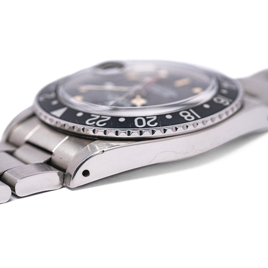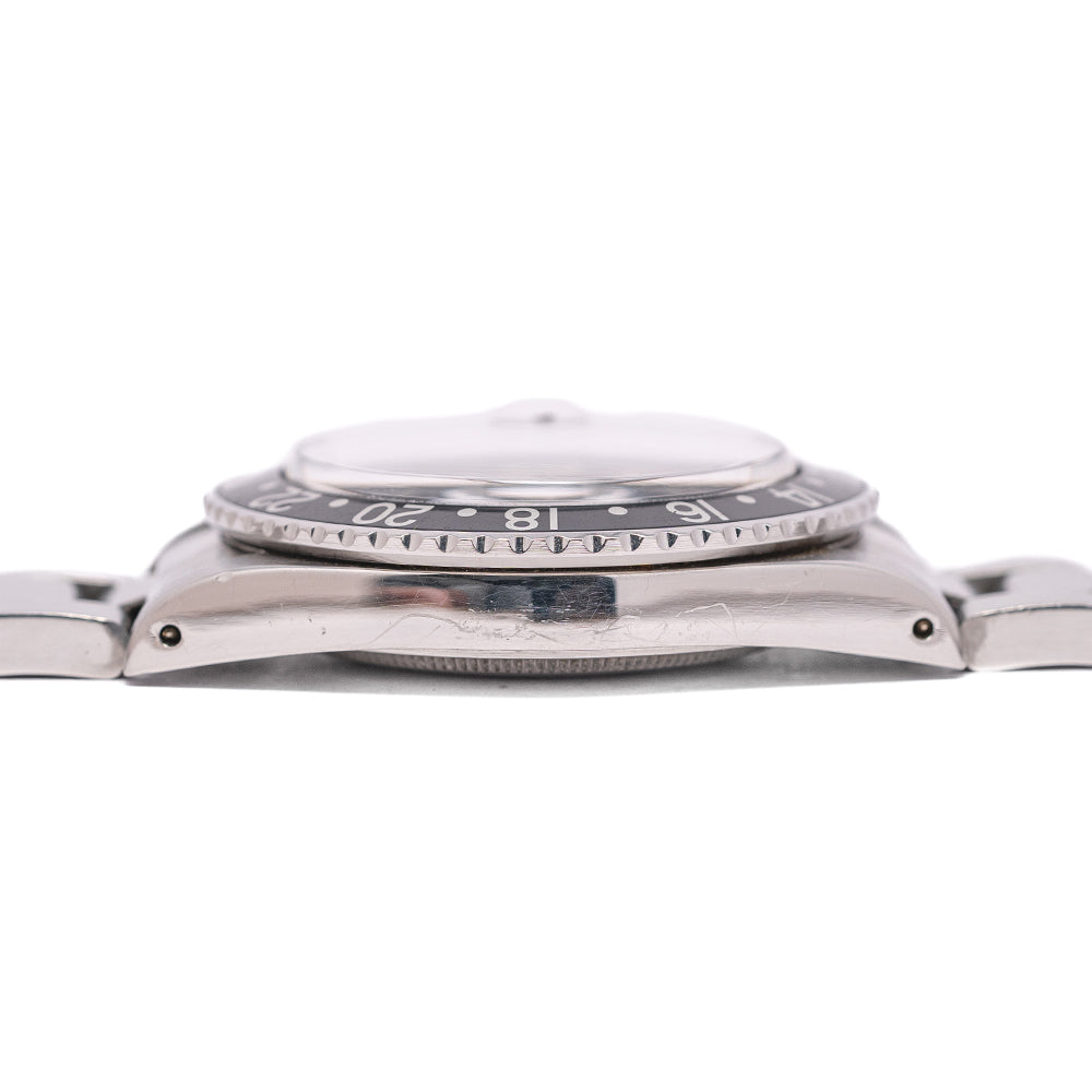 This watch is sold as "Watch Only" and therefore comes with no Rolex box or Rolex paperwork. The watch comes paired with a 1991 Rolex Service 20mm Rolex stainless steel Oyster bracelet with the “S” stamped on the folded flip-lock clasp to signify this - the bracelet has 12 links in total. The watch is from Circa. 1984 and is in worn, vintage condition, but overall good as you can see. The minute hand and GMT hand are later Rolex Service replacements infilled with LumiNova, the remaining hands and dial are original Tritium. The watch comes with our 12-Months NON-Waterproof Warranty.