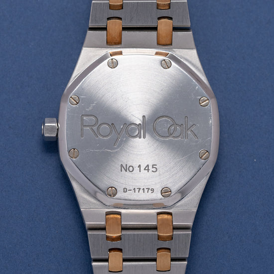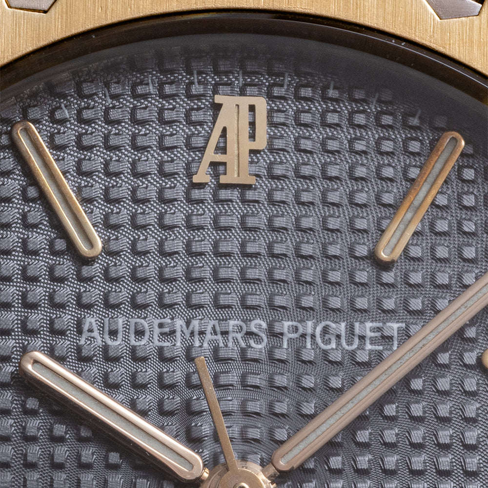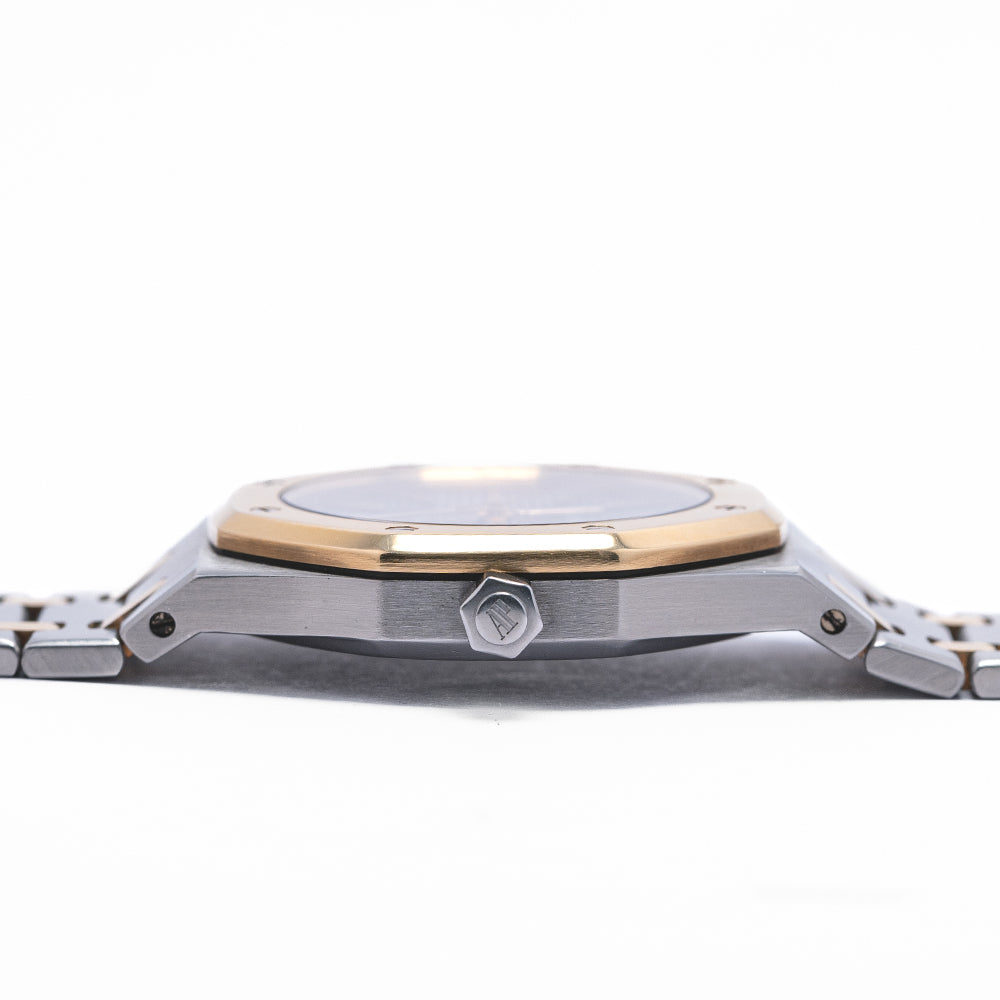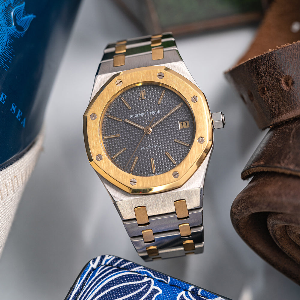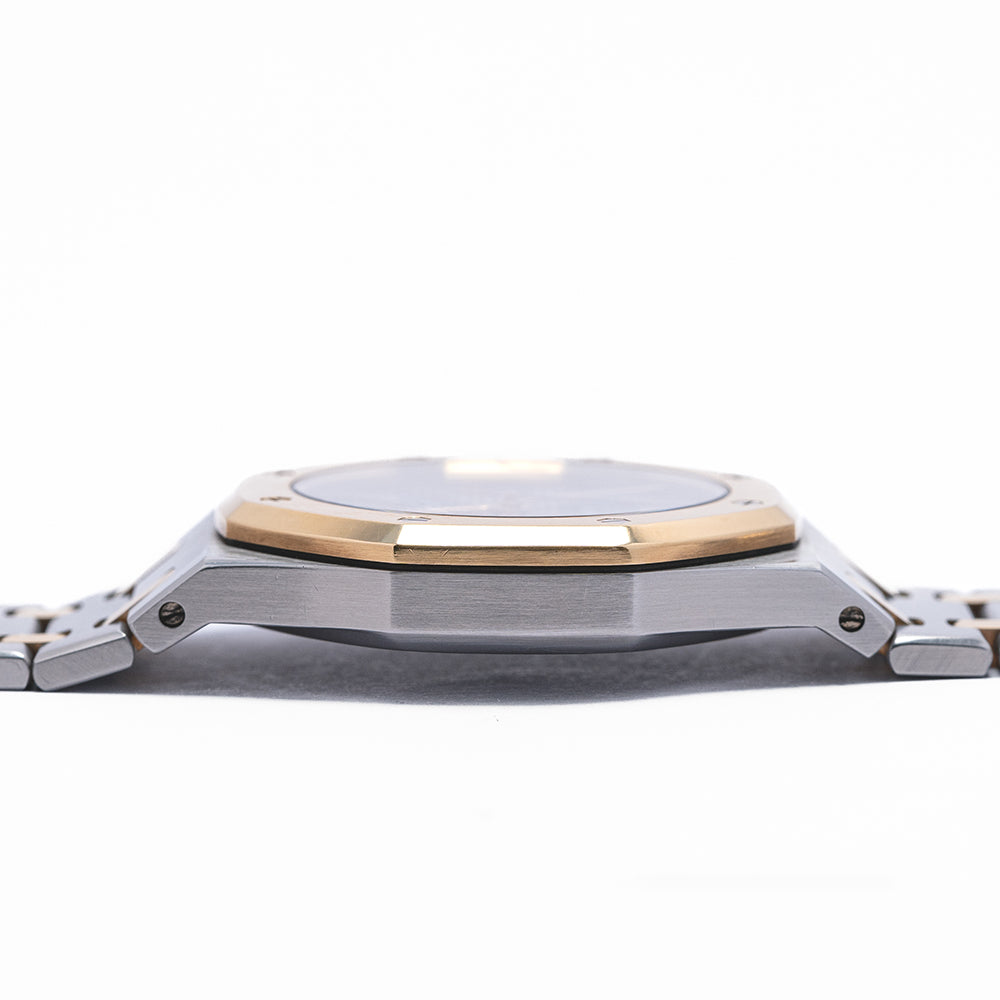 For me this is one of the most underrated Royal Oak references out there at 36mm with Steel & Gold and this colour dial. Most people overlook this model due to the size and they feel that 36mm will be too small on their wrist, this could not be further from the truth, the 36mm wears perfectly on most sized wrists and this is thanks to the incredible design of Gerald Genta, the shape of the case and how the bracelet flows from the case, it wears far larger than the 36mm dimension would lead you to believe. This is a model I would highly recommend coming to view in person and seeing for yourself, so book an appointment today!