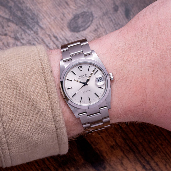 This watch is sold with an original Tudor box, swing tag and paperwork. The watch comes paired with a 20mm Tudor integrated brushed stainless steel bracelet with a signed folding clasp and will fit up to a 7.15-inch wrist. The watch is from November 1990 and is sold in worn unpolished condition as you can see from the photographs, marks can be seen on the sides of the case, a full case and bracelet refurb can be provided at an additional cost on request. The watch comes with our 12-Months NON-Waterproof Warranty.