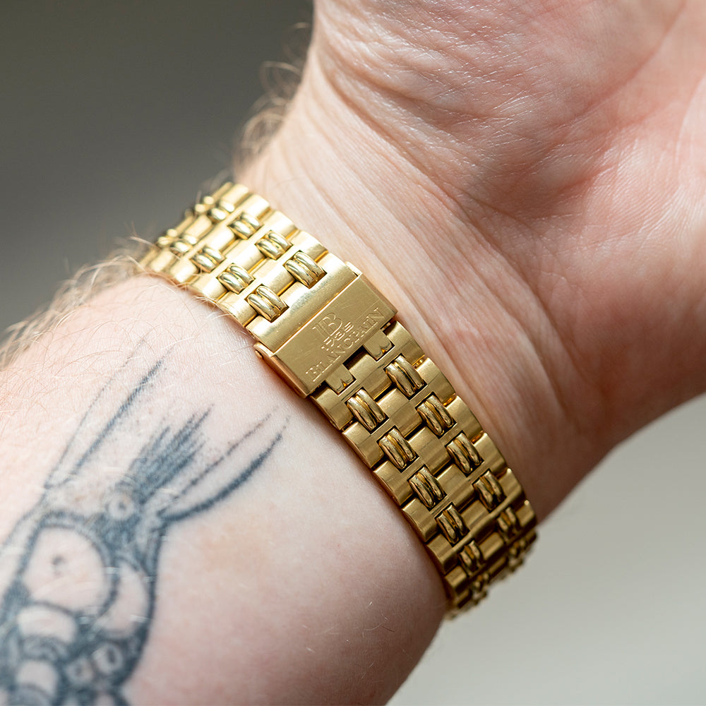 It is far from every day that a full gold, triple calendar, moonphase Blancpain comes across your desk, then add the fact that it has its rare and beautifully crafted Gay Frères bracelet too. But we don't stop there, as you look closer, you'll see the ever alluring words "Tiffany & Co" signed at 6 o'clock! I have only seen these examples in two-tone and never in full gold, and that is exactly why this one had to stay in the end. That's not to say it will stay forever, but it has been an absolute joy to wear and own this incredible chunk of gold.