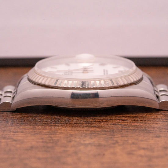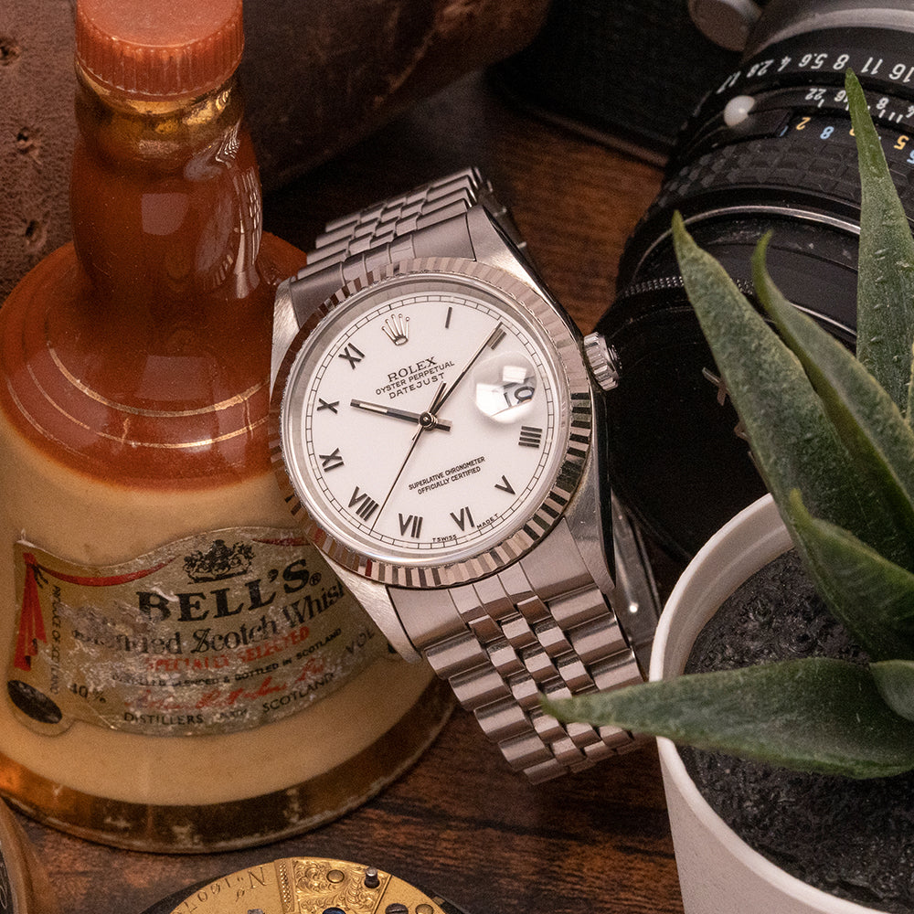 I am always amazed at how rarely white Rolex Datejust come to market, typically they are silver but not pure white like this lovely 16234! It also features applied Roman numerals, all cased in 36mm and unpolished condition, it doesn't get much better than this. Especially when compared to the prices of modern 36mm Datejusts, I know what I'd rather have!