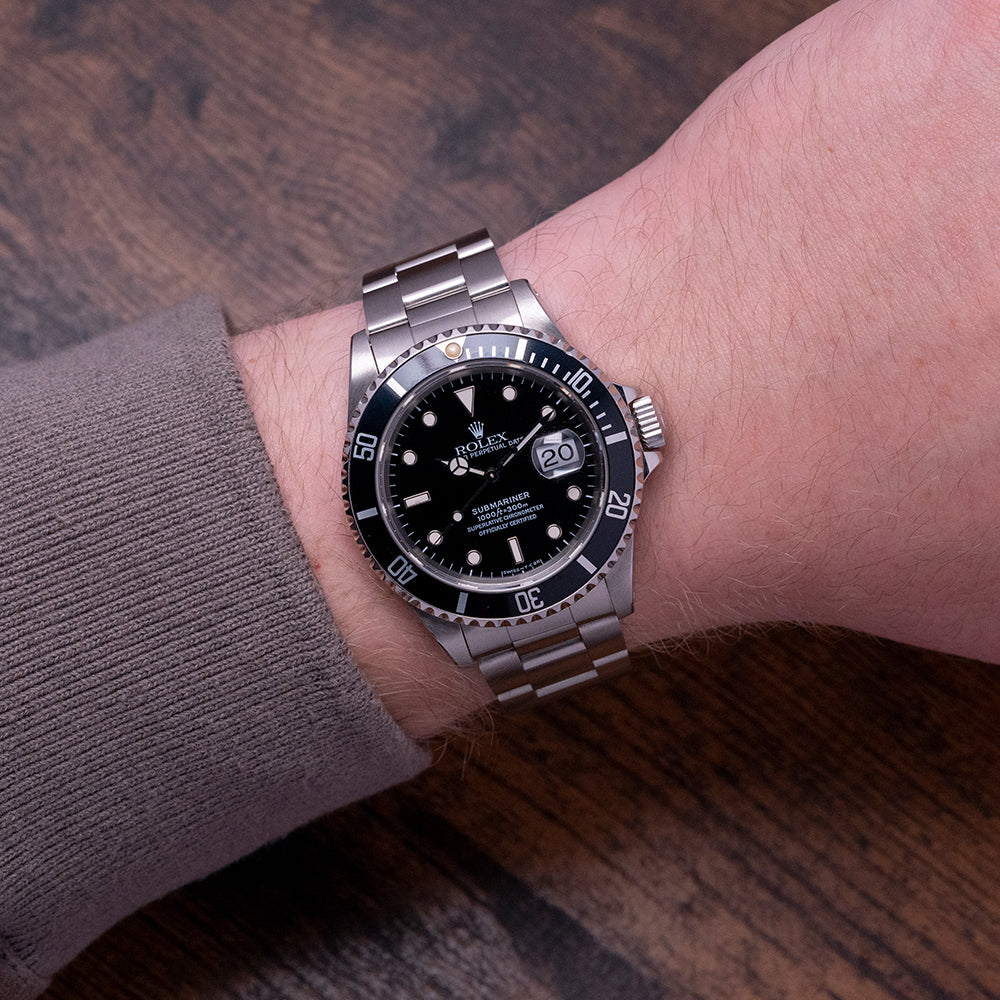 It's hard to beat a classic Submariner Date, especially a pre-ceramic reference 16610 like this one in wonderful condition with its box and paperwork, tritium dial and hands too! These neo-vintage references are some of the final Rolex that will develop patina over time, the tritium will change, the aluminium bezel fades, and potentially even patina to the dial itself over time, we just don't know yet... That to me makes these references really exciting and full of charm and character.