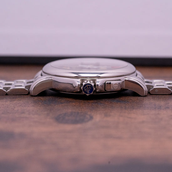 This watch is sold with its original Ulysse Nardin and Ulysse Nardin booklets, but no original Ulysse Nardin paperwork is present. The watch comes paired with its original Ulysse Nardin signed bracelet with deployment clasp, the bracelet will fit up to a 7-inch wrist. The watch is from Circa. 1999 and is in worn condition, however, as you can see from the photos the watch is in fair overall condition, a full case and bracelet refurb can be provided at an additional cost. The watch comes with our 12-Months NON-Waterproof Warranty.