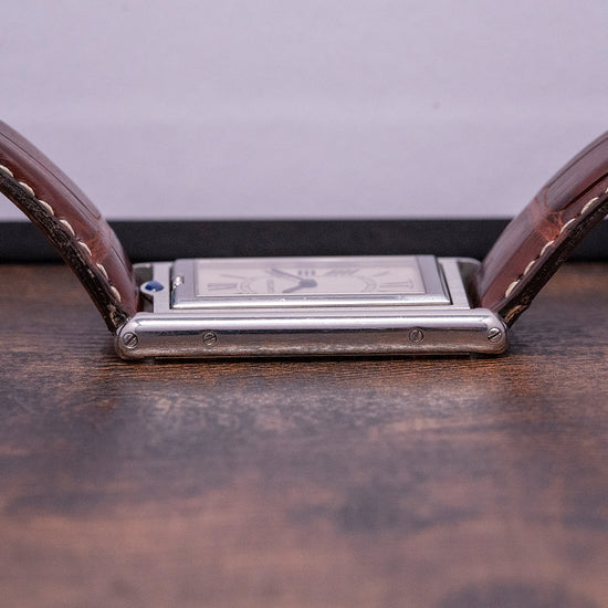 This watch is sold with an original Cartier presentation box, but no paperwork is provided. The watch comes paired with its original Cartier 20mm leather strap with a shapely Cartier deployment clasp. The watch is from Circa. 2001 and is sold in worn condition, but overall fair condition as you can see from the photos. The watch comes with our 12-Months NON-Waterproof Warranty.