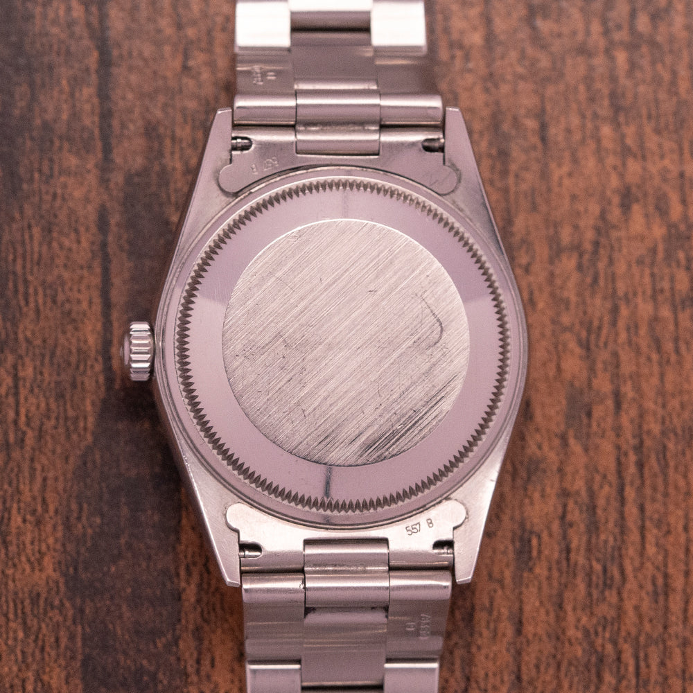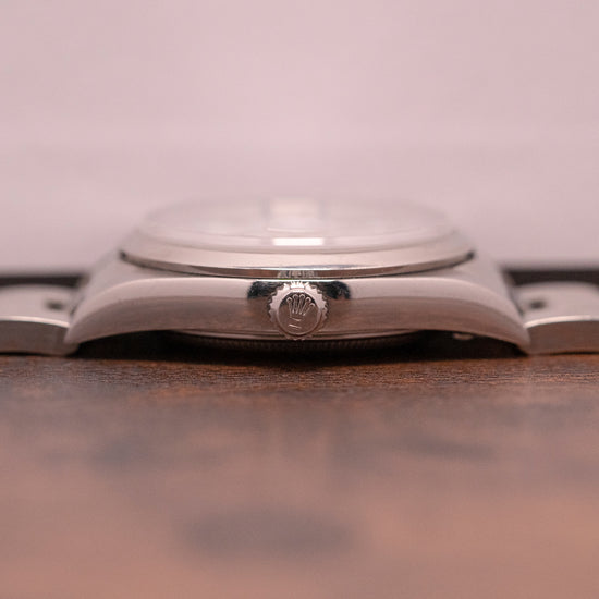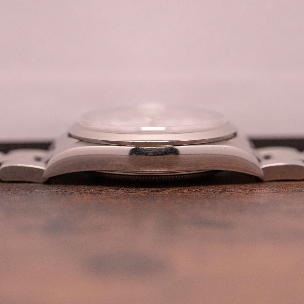 As a proud owner of a 34mm Rolex 6694, I can safely say that for my 7-inch wrist, I find these small cases perfect! This 15200 features a wonderful dial that truly stands out and offers something slightly different to the norm we are used to within Rolex. If you are unsure about 34mm for your wrist, book an appointment and come try it on for yourself!