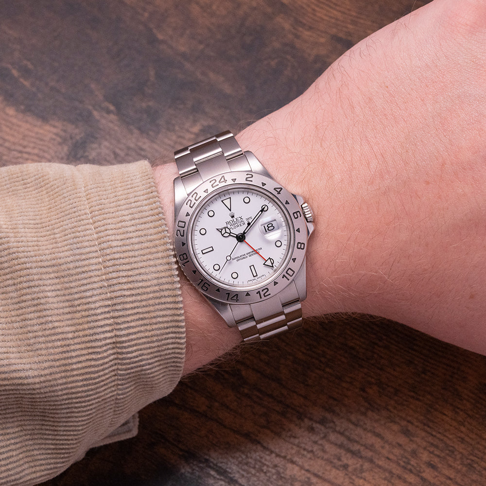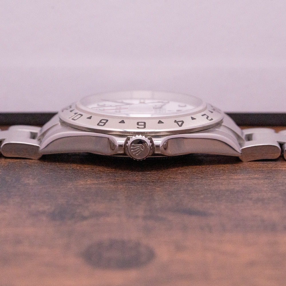 The Rolex Explorer II has always been the more affordable sports Rolex when you consider complication and design, usually less than a GMT and around the price of a Submariner, to me that is insane! One of the few white dials that Rolex offers in the sports range, perfect 40mm case, solid end links and this example comes as a complete set down to the bezel protector! I wouldn't hesitate on this one if you are interested.