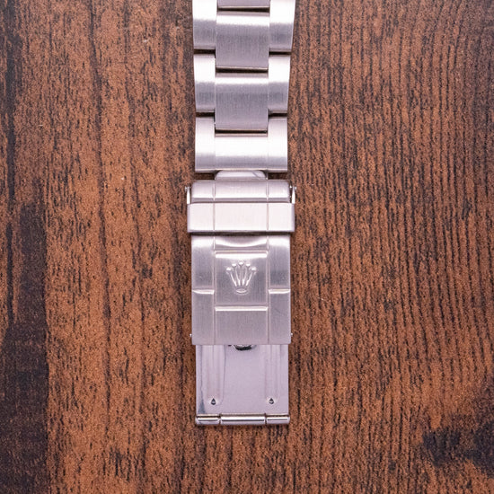 This watch is sold with its original Rolex box, swing tag, bezel protector and Rolex paperwork, including a 2015 RSC. The watch comes paired with its original brushed solid end-link 20mm Rolex Oyster bracelet with a signed Rolex clasp and flip lock, all links are provided. The watch is from August 2004 and is sold in worn condition, but overall very fair condition as you can see. The watch comes with our 12-Months Warranty.