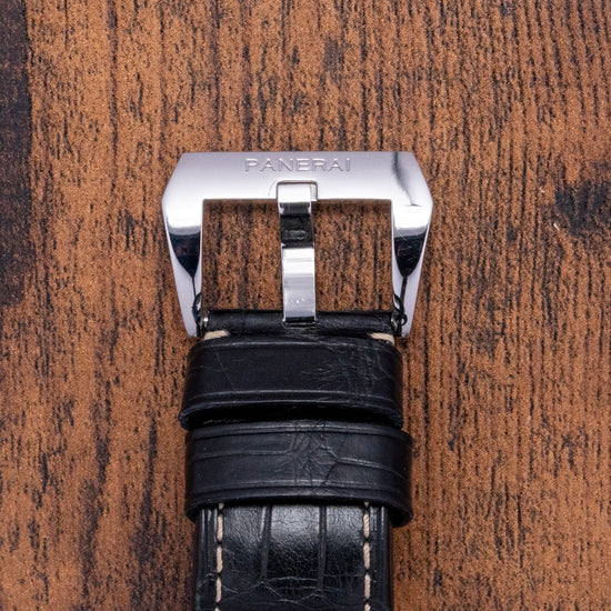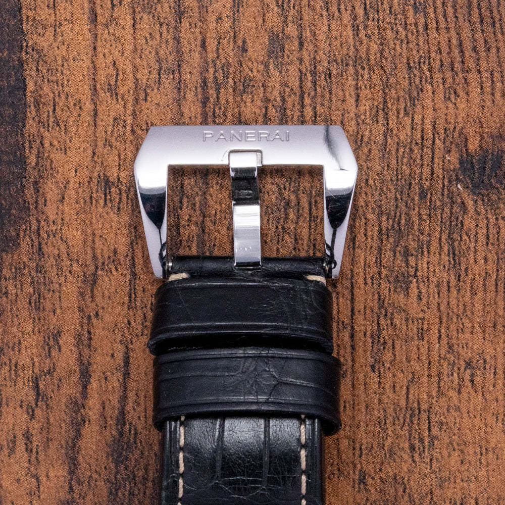 This watch is sold with an original Panerai box & paperwork. The watch comes paired with two Panerai 24mm straps with a signed buckle. The watch is from November 2007 and is in worn condition, however, as you can see from the photos it is in fair condition. A small scratch can be seen on the crystal, see additional photos below. The watch comes with our 12-Months Warranty.