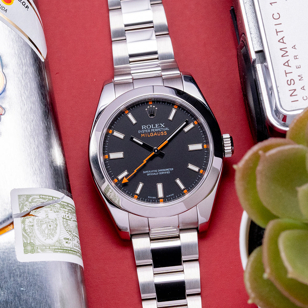 The Rolex Milgauss is a model that has gone through many iterations and is constantly speculated upon for new releases, this now discontinued reference 116400 feels to me to be one of the more bold designs from the brand with the crazy lightning bolt seconds hand. If you are in the market for a Rolex but want something that stands out from the crowd and offers a unique design, this Milgauss is the one for you, add it to your collection today!