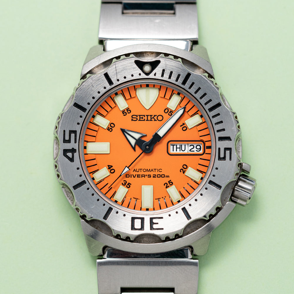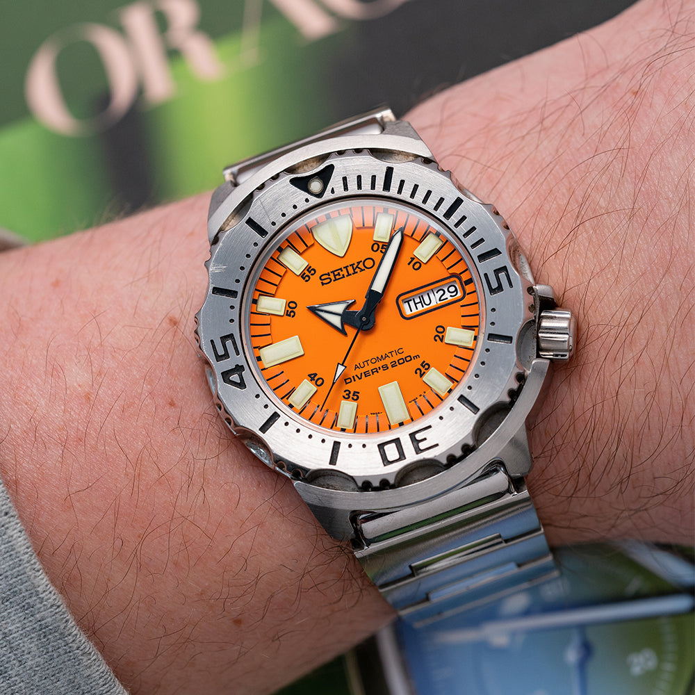 We have stocked many Monster's over the years and all have gone to collectors who absolutely love them, it is a watch you either love or you hate and I used to really dislike it, but over the years I've really warmed up to the Monster and even owned one for a prolonged period of time! This 1st Gen Orange Monster is THE Monster for most collectors, it gets even better than this one comes with its box and paperwork too, so snap it up whilst you can.