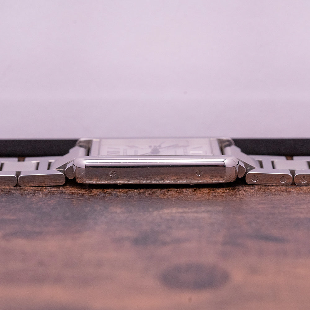 This watch is sold with its original Cartier box, Cartier booklets, and Cartier booklet holder. The watch comes paired with a 23mm Cartier polished and brushed stainless steel bracelet with its Cartier signed deployment clasp, all links are provided. The watch is from Circa. Late 2010s and is sold in worn condition, we can offer a complete refinish of the case and bracelet for an additional cost if requested. The watch comes with our 12-Months Warranty.