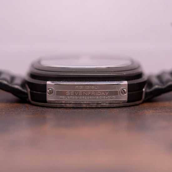 This watch is sold “Watch Only” without its original box or paperwork. The watch comes paired with a 28mm SevenFriday black calf leather strap. The watch comes from Circa. 2010s and is in worn condition. The watch comes with our 12-Months NON-Waterproof Warranty.