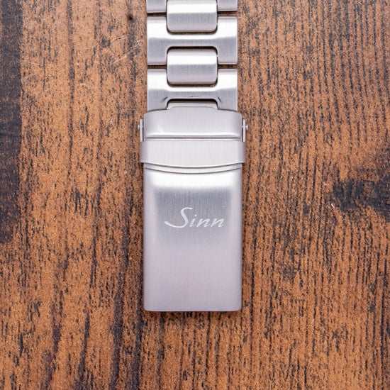 This watch is sold “Watch Only” and therefore comes without its Sinn box or Sinn paperwork but does come with its bracelet box and spring bar removal tool. The watch comes paired with its Sinn 20mm H-link satin brushed stainless steel bracelet and signed folding clasp and flip-lock, all links are provided plus a brown calf leather strap and signed pin buckle. The watch is from Circa. 2010s and is sold in worn condition, but overall this is in fair condition as you can see and comes with our 12-Months Warranty.