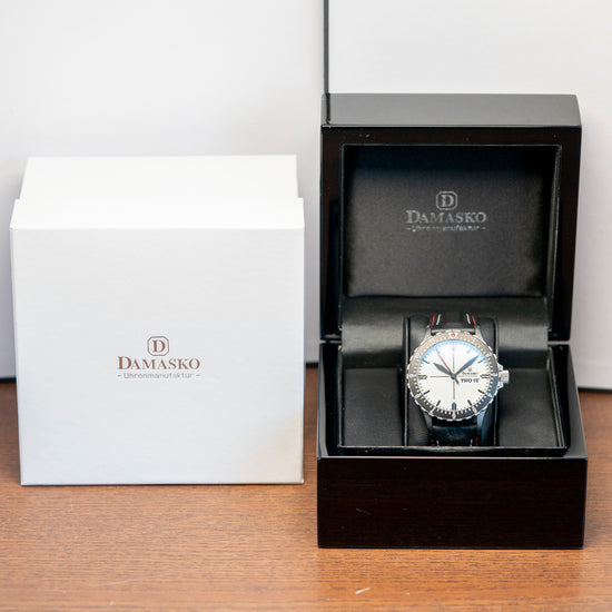 This watch is sold with its original Damasko box. The watch comes paired with its original black 20mm Damasko leather strap and buckle. The watch is from September 2016 and is sold in lightly worn condition, as you can see from the photographs. The watch comes with our 12-Months Warranty.