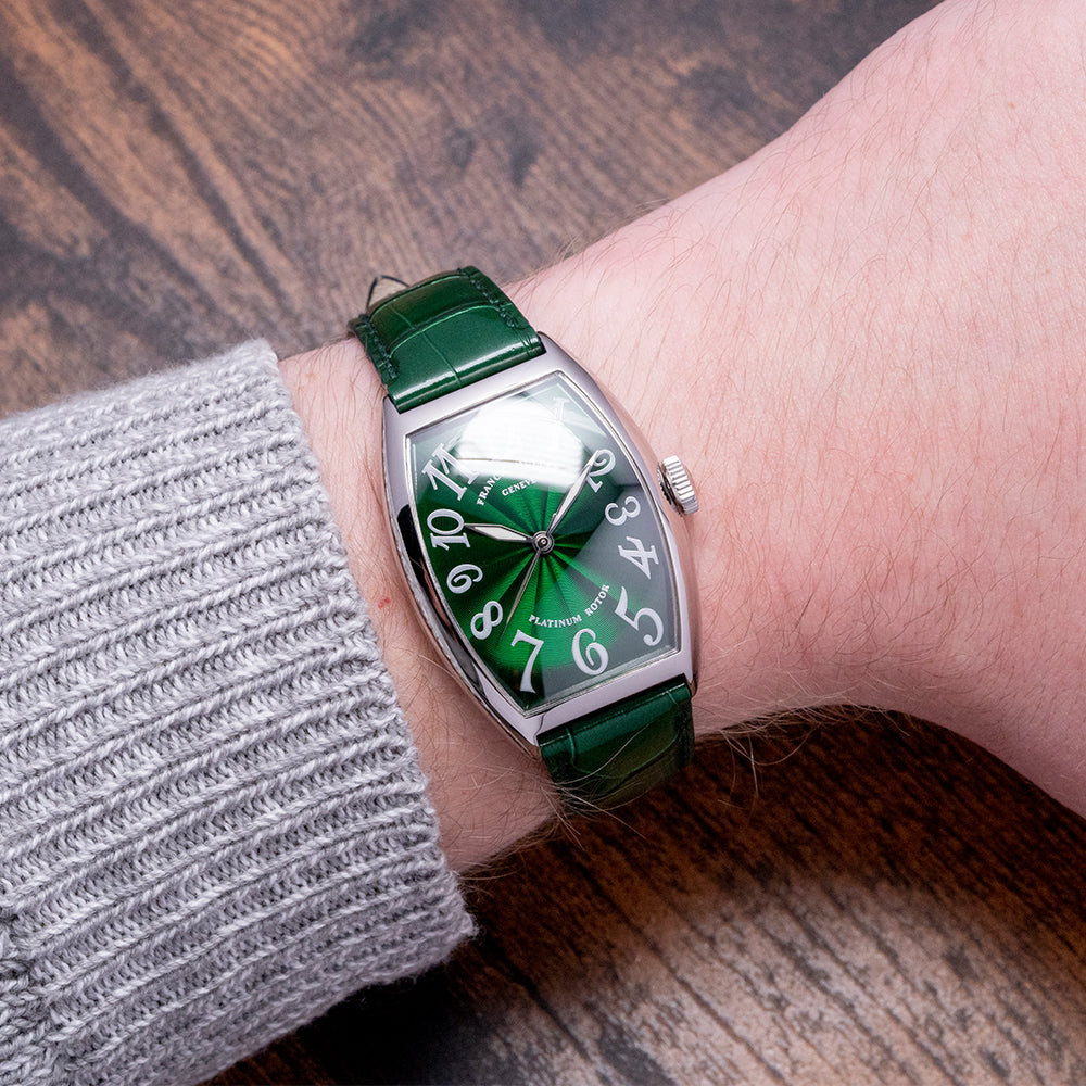 This Franck Muller Cintrée Curvex is a real show stopper thanks to that incredibly vibrant and striking green dial, the way it plays with the light and changes tone is something impossible to capture and impossible to turn away from in the metal. If you are a fan of green then this very well may be the perfect watch for you, the case shape is wonderful on the wrist and the overall fit and finish are amazing on and off the wrist.