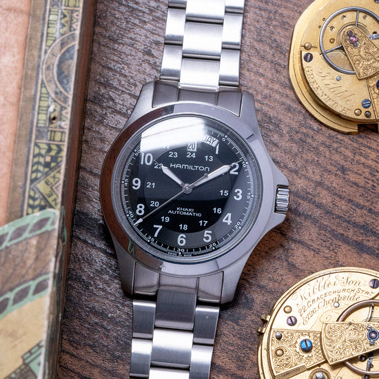 The Hamilton Khaki King in 40mm has been a watch that most collectors at some point in their collecting cycle have owned as it offers incredible value for its design and build quality, plus you can really wear them and not worry about them as they are built to last and this model I have for sale is case in point! I'd personally take this one and throw it on a NATO or a nice leather strap and continue to enjoy and wear it for many years to come.