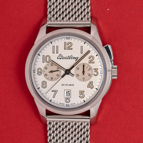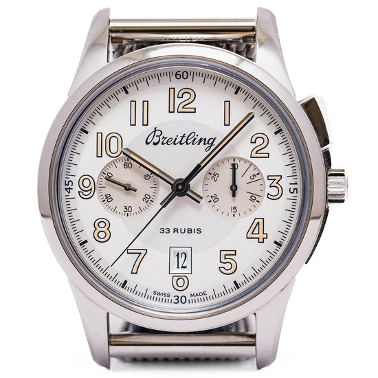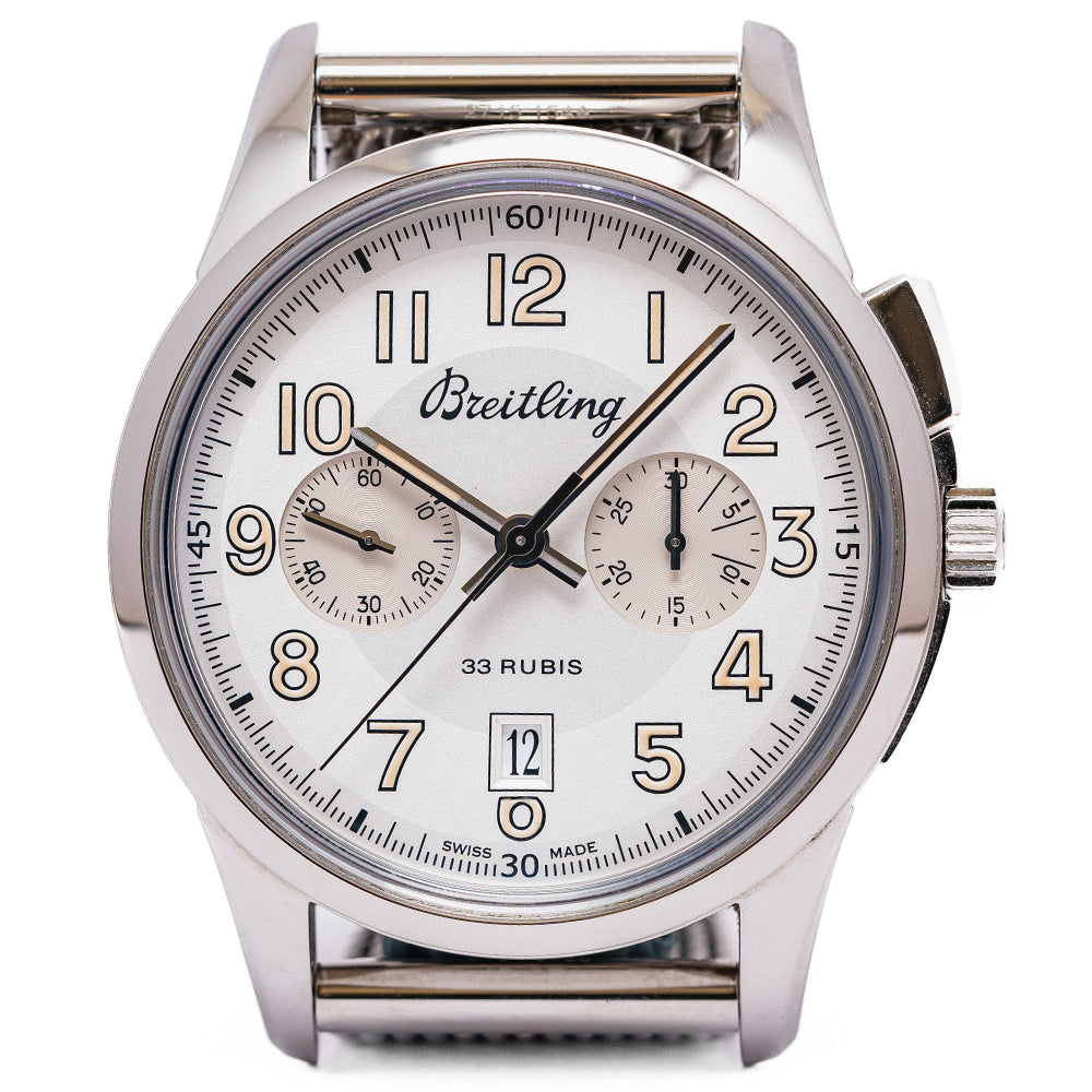 Breitling was established in 1884 by Leon Breitling in the Swiss Jura Mountains. In 1915 Gaston Breitling introduced a pusher at 2 o’clock to start, stop and reset the chronograph. Leon later moved the reset to a pusher at 4 o’clock. During 1939 Breitling shipped a huge quantity of chronographs to the Royal Air Force. During the war with Germany surrounding Switzerland Leon and some friends created a makeshift runway near their factory. Planes would use the car's headlights as a guide to land. Once on the ground, they were quickly loaded, taking off before the Germans knew what was going on. They introduced the “Navitimer” a navigation computer in 1952 used to calculate a flight plan. In 1969 they collaborated with Heuer, Burne, and Dubois-Depraz on a top-secret project called Project 99. Together they developed one of the first self-winding chronograph movements. Breitling stands for high precision, outstanding performance, and functionality. During the early days of space exploration, Lt. Commander Scott Carpenter went around the earth three times whilst wearing a modified Navitimer. In 2017 they were sold to CVC Capital Partners, Europe's largest private equity firm.