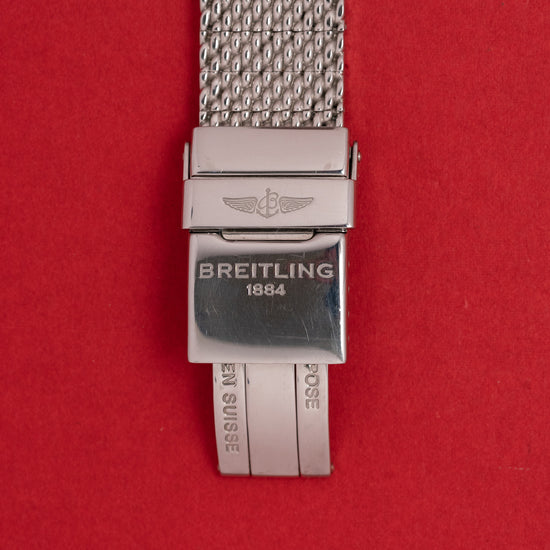 This watch is sold with its original Breitling presentation box and paperwork. The watch comes paired with its original 22mm Milanese bracelet with a signed folding clasp. The watch is from September 2017 and is sold in worn but fair condition, as you can see from the photos. The watch comes with our 12-Month Warranty.