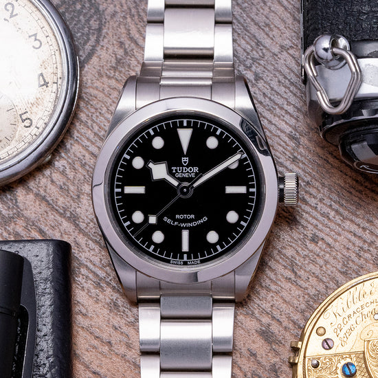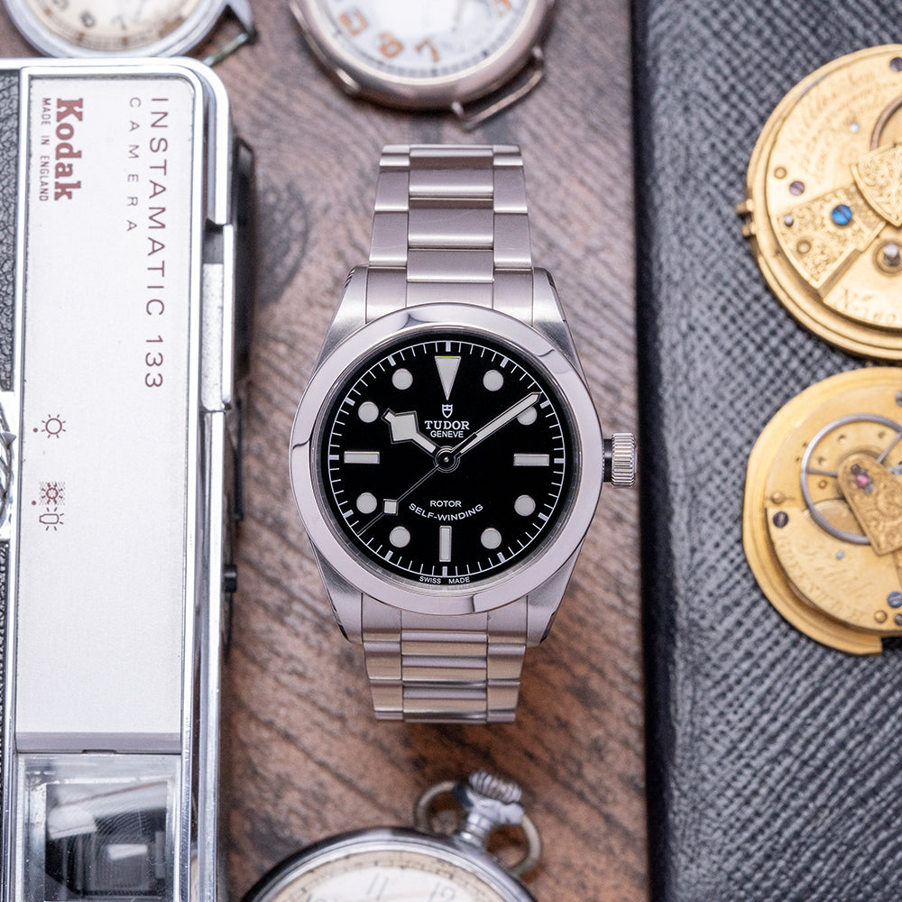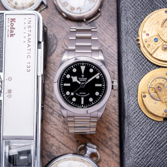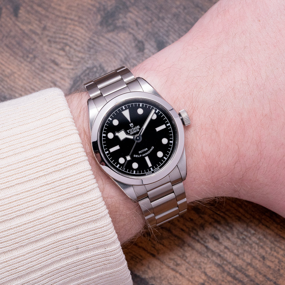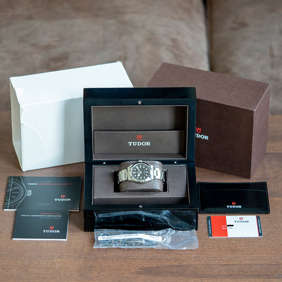 This watch is sold with its original Tudor box and paperwork. The watch comes paired with its original 19mm Tudor brushed stainless steel bracelet plus an additional 19mm Tudor NATO strap. The watch is from April 2017 and is sold in worn condition, with signs of wear on the bracelet and case, a full case and bracelet refurb can be done at an additional cost. The watch comes with our 12-Months Warranty.