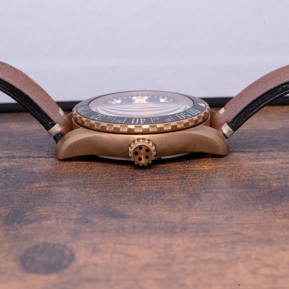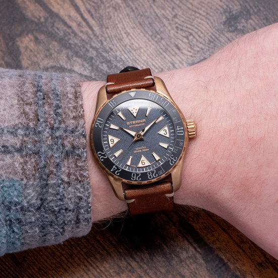 If you are in the market for a well-built, beautifully designed large bronze diver that won't break the bank I'd say look no further, you've found it with this Eterna KonTiki Manufacturer Bronze 43.5mm! It demands attention on the wrist with the tone of bronze, the texture of the dial, the boldness of the indices and the overall heft, it is incredible. I wouldn't hesitate to snap this one up and to add it to your collection whilst you can.