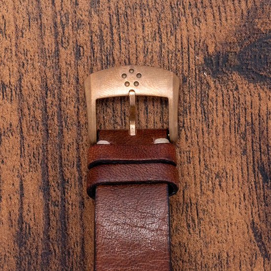 This watch is sold with its original Eterna box, swing tag and Eterna paperwork. The watch comes paired with its 22mm vintage-style leather strap with a signed bronze pin buckle. The watch is from April 2018 and is sold in worn condition but is overall good used condition, as you can see from the photos, do keep in mind bronze develops a patina and oxidised. The watch comes with our 12-Months Warranty.