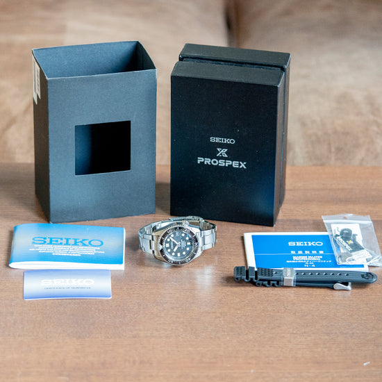 This watch is sold with its original Seiko box and paperwork. The watch comes paired with its original Seiko 20mm stainless steel bracelet brushed links and polished inner links with a signed fold clasp and a dive extension and is coated in Seiko’s Diashield which is scratch-resistant, all links are provided plus a Seiko waffle-style rubber strap with a Seiko keeper and buckle. The watch is from February 2018 and is sold in worn condition, but overall very fair condition as you can see from the photographs and comes with our 12-Months Warranty.