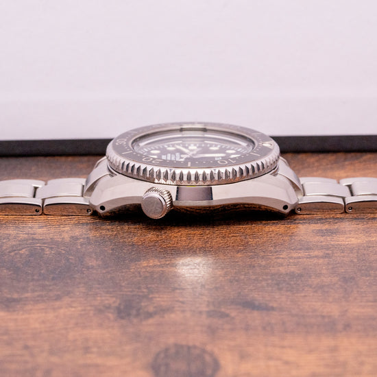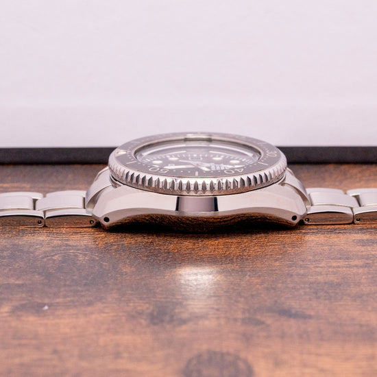 The Seiko Marinemaster is without question the tank of the Seiko lineup, truly living up to its name being the master of the marine! This reference SBDX017 features an incredibly legible dial without the Prospex logo making it simple and clean. If you are looking for a large dive watch that is still surprisingly comfortable and yet can take a beating and survive essentially anything, the Marinemaster 300 is the watch for you!