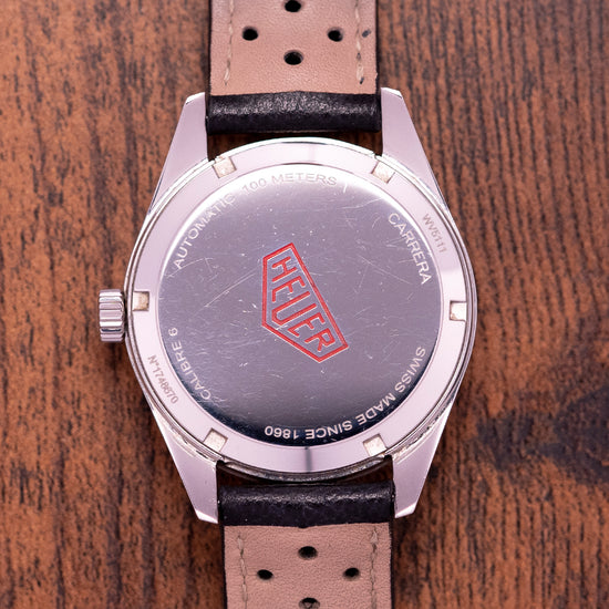 This watch is sold with its original TAG Heuer presentation box, swing tag & papers. The watch comes paired with its original 19mm TAG Heuer leather strap and signed deployment buckle. The watch is from January 2018 and is sold in worn condition, but overall in very fair condition as you can see from the photographs. The watch comes with our 12-Months Warranty.