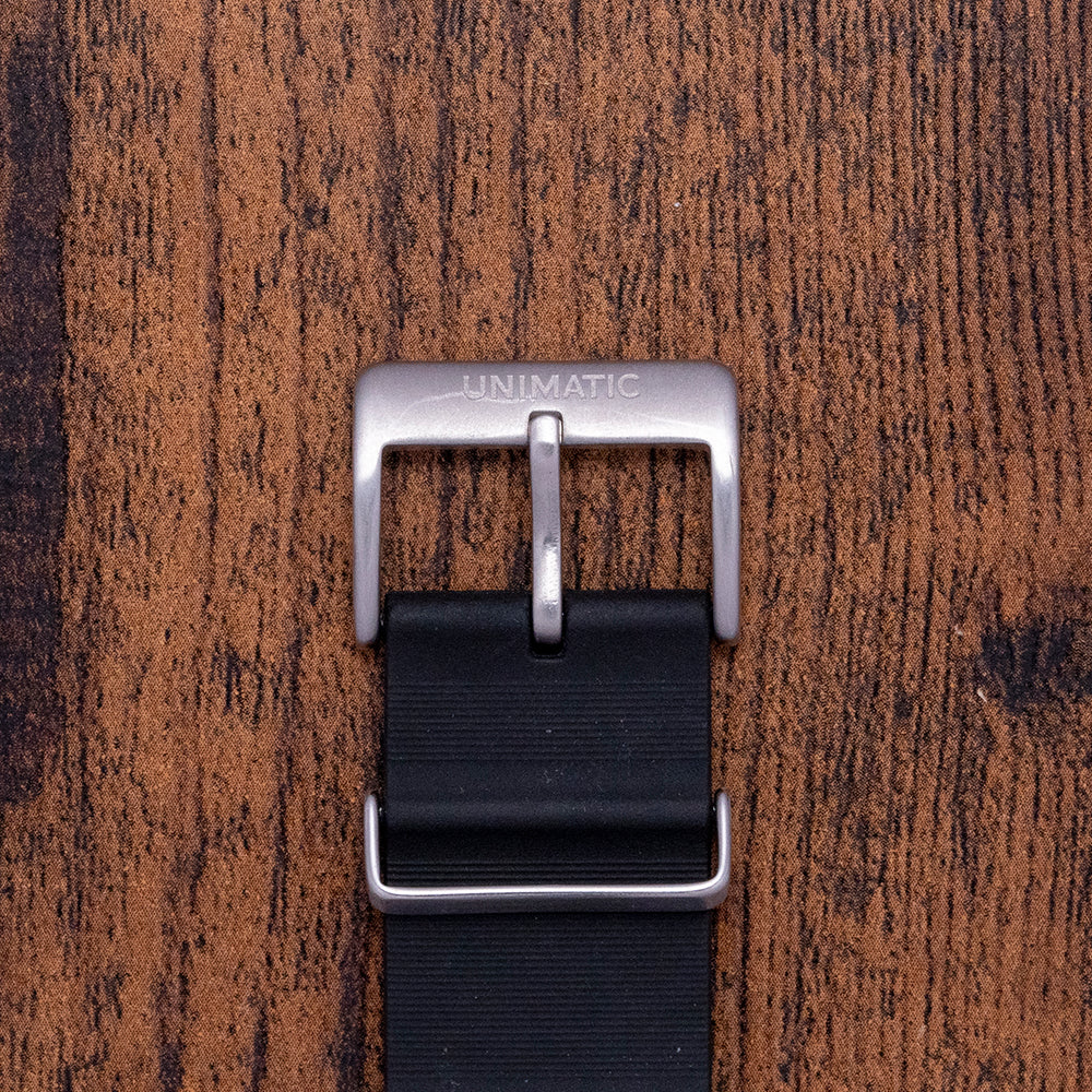 This watch is sold with its original Unimatic box and Unimatic paperwork. The watch comes paired with three Unimatic 22mm straps with signed buckles. The watch is from November 2018 and is sold in worn condition, as you can see from the photos. The watch comes with our 12-Months Warranty.