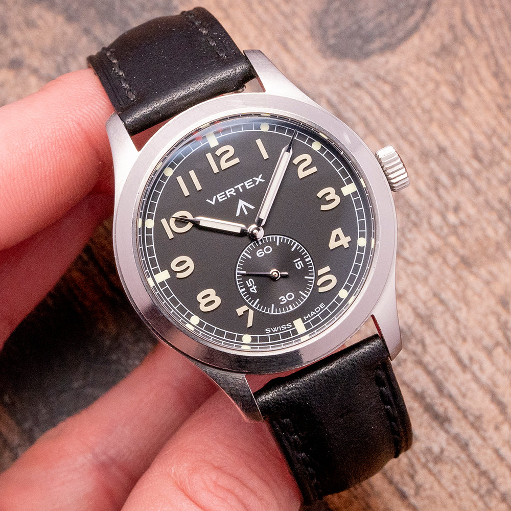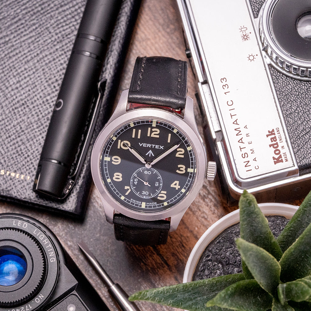 Vertex was the brainchild of Claude Lyons of London born in 1885. At the age of 17, he started his involvement in the watch Industry. With the help of a £1000 loan, he set up Dreadnaught Watches in 1912. In 1915 they were producing watches for the British armed forces during WW1. In 1916 he founded Vertex Watches Ltd in both Hatton Gardens and Switzerland. In 1927 Vertex became the exclusive importer of Movado Watches to the UK. 1938 Henry Lyons Claude's son-in-law joins the company. In 1940 their Hatton Gardens premises were destroyed by a Luftwaffe bomb. In 1941 as a Captain in the British Army Henry was asked to create a watch suitable for the British military. 1944 saw the production of the Cal.59 W.W.W. Nav watch. Business continued successfully throughout the 50s and 60s. Sadly in 1972 due to the emergence of the Quartz revolution and the expiring of his lease in Hatton Gardens, Henry closed the Company. In 2015 Claude’s Great Grandson Don Cochrane re-established the Company. And the rest is history as they say.
