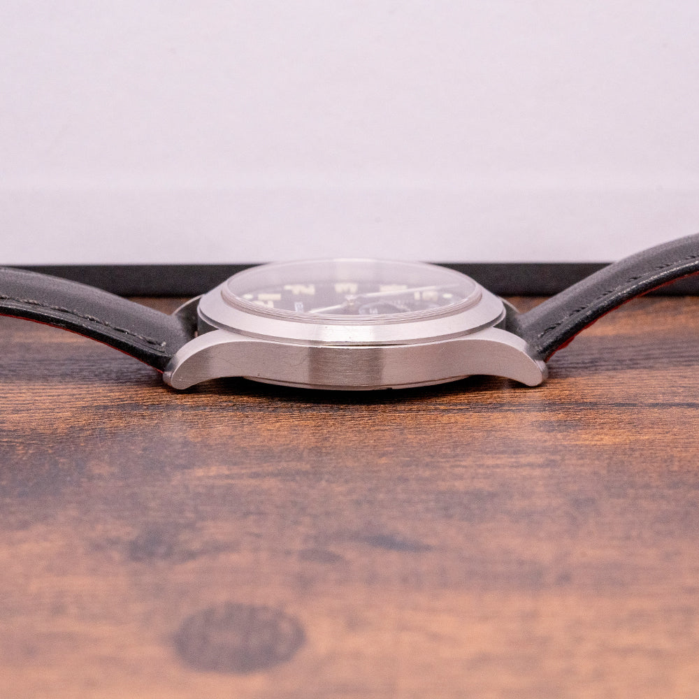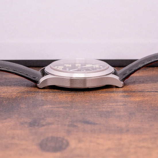 This watch is sold with its original Vertex Peli case and Vertex paperwork. The watch comes paired with its original black Vertex signed leather strap with Vertex signed buckle, plus an additional Vertex NATO strap, both are worn. The watch is from Circa. 2018 and is in worn condition as you can see from the photographs, a full case refurb can be provided at an additional cost on request. The watch comes with our 12-Months NON-Waterproof Warranty.