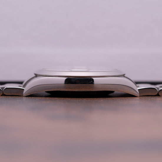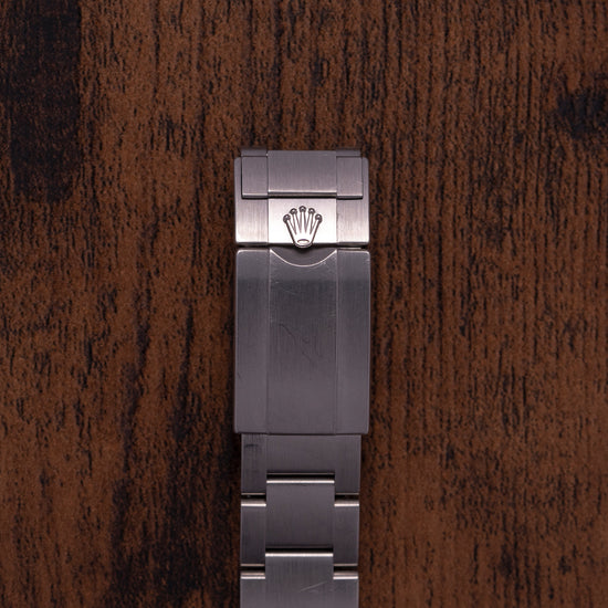 Here we have a 2019 Rolex Explorer 1 39mm 214270 now discontinued, with a 39mm case made of corrosion-resistant 904l OysterSteel and curves over your wrist with tapered lugs, a lug-to-lug length of 48mm and a case thickness of 12mm giving the watch an impressive wrist presence. The Rolex Explorer came about after 20 years of development in extreme environments, starting back in the 1930s, the goal of the watch was to create the perfect mountaineer’s tool, keeping the perfect time at -50°C (-58°F) with 70% less oxygen than at sea level. Rolex announced at BaselWorld in 2016, a new Ref. 214270 which was again updated from the 36mm with lume-filled 3, 6, and 9 indexes, the handset is also slightly longer and thicker than the 36mm, making it a much better-proportioned dial. On the right side is a triple-sealed Triplock screw-down crown, polished and brushed surfaces transition with crisp edges and a highly polished smooth bezel with a scratch-resistant sapphire crystal. A glossy black dial with an outer minute track, applied 3, 6, and 9 18ct white gold numerals filled with Chromalight lume alongside Baton indexes to mark the hours, elegant 18ct white gold Mercedes hands, with a sweeping second hand, filled with Chromalight lume. On the reverse, a coin-edged screw-down case back, inside we have the Rolex Caliber 3132 considered a very accurate automatic movement with Chronometer Certification of -2/+2 seconds a day, 31 jewels beating at 28,800 beats per hour, the use of a Parachrom hairspring for its speed, it’s 10 times more accurate, resistant to shocks, resistant to extreme temperatures, and unaffected by magnetic fields and gravity. The 20mm 904L OysterSteel bracelet is finished with subtle radial brushing to the upper segments while the outer links have been highly polished matching the bezel, it has the Oysterlock safety clasp with Easylink micro-adjustments up to 5mm extension and also comes with its Rolex presentation box and papers.