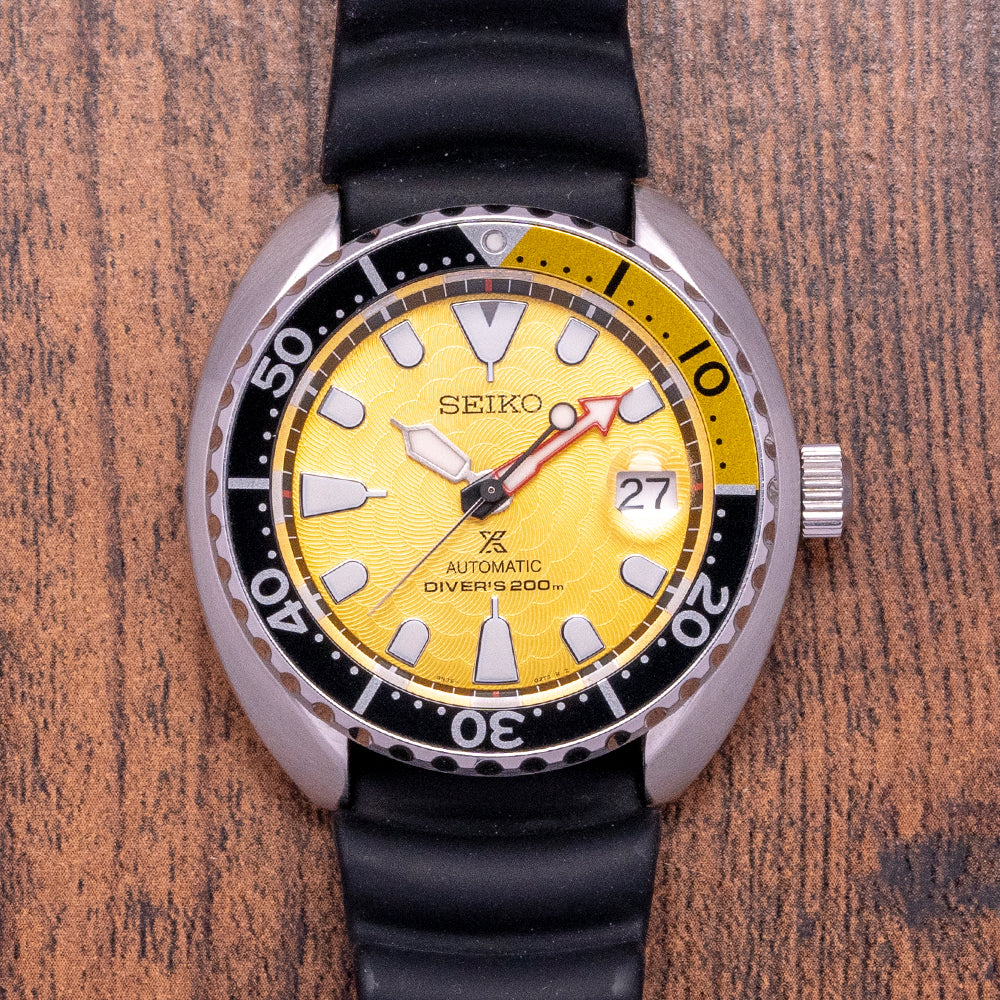 We don't often see these Zimbe Thailand limited editions make their way across the ocean, which is a real shame as they are often some of the very best limited editions to come from Seiko, this SRPD19 is the perfect example of that! The yellow is vibrant and the texture compliments it perfectly, plus the case proportions of the "Mini Turtle" are just perfect on the wrist. With summer basically here in the UK, this is the perfect watch to throw on and enjoy against the sun!
