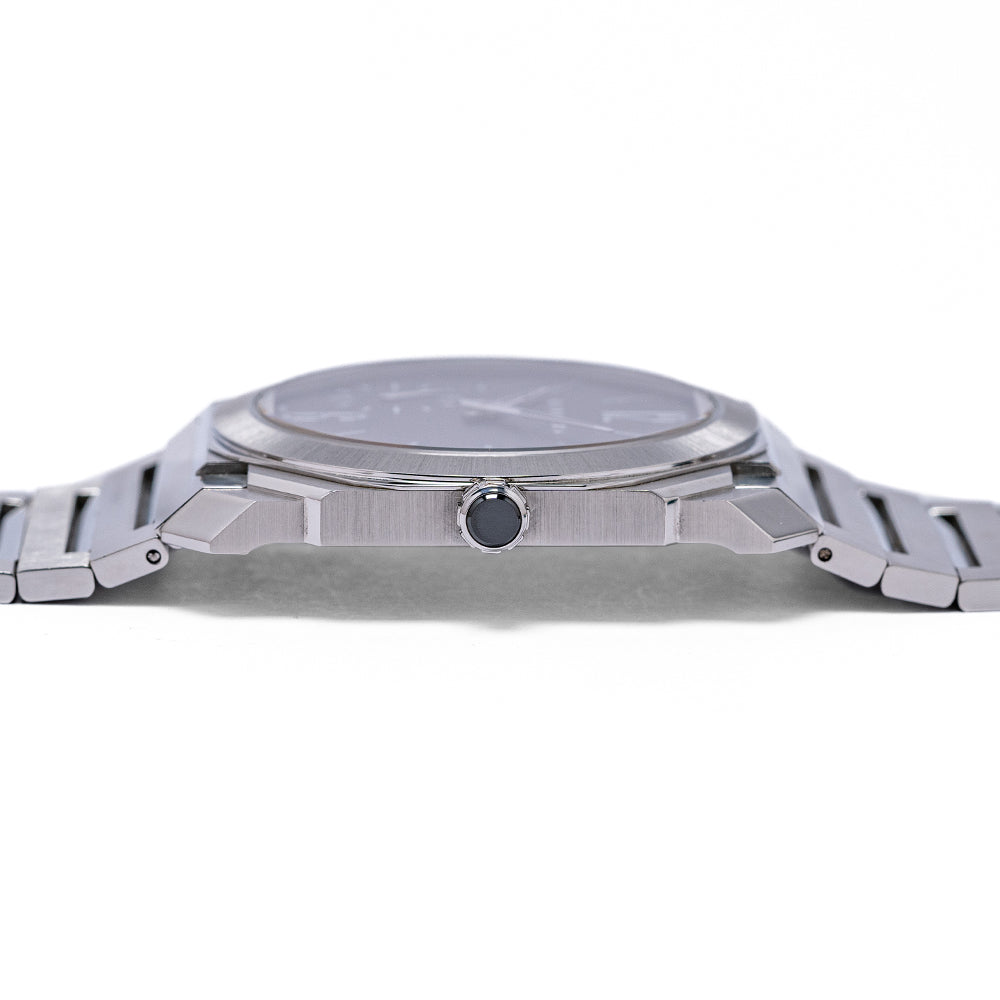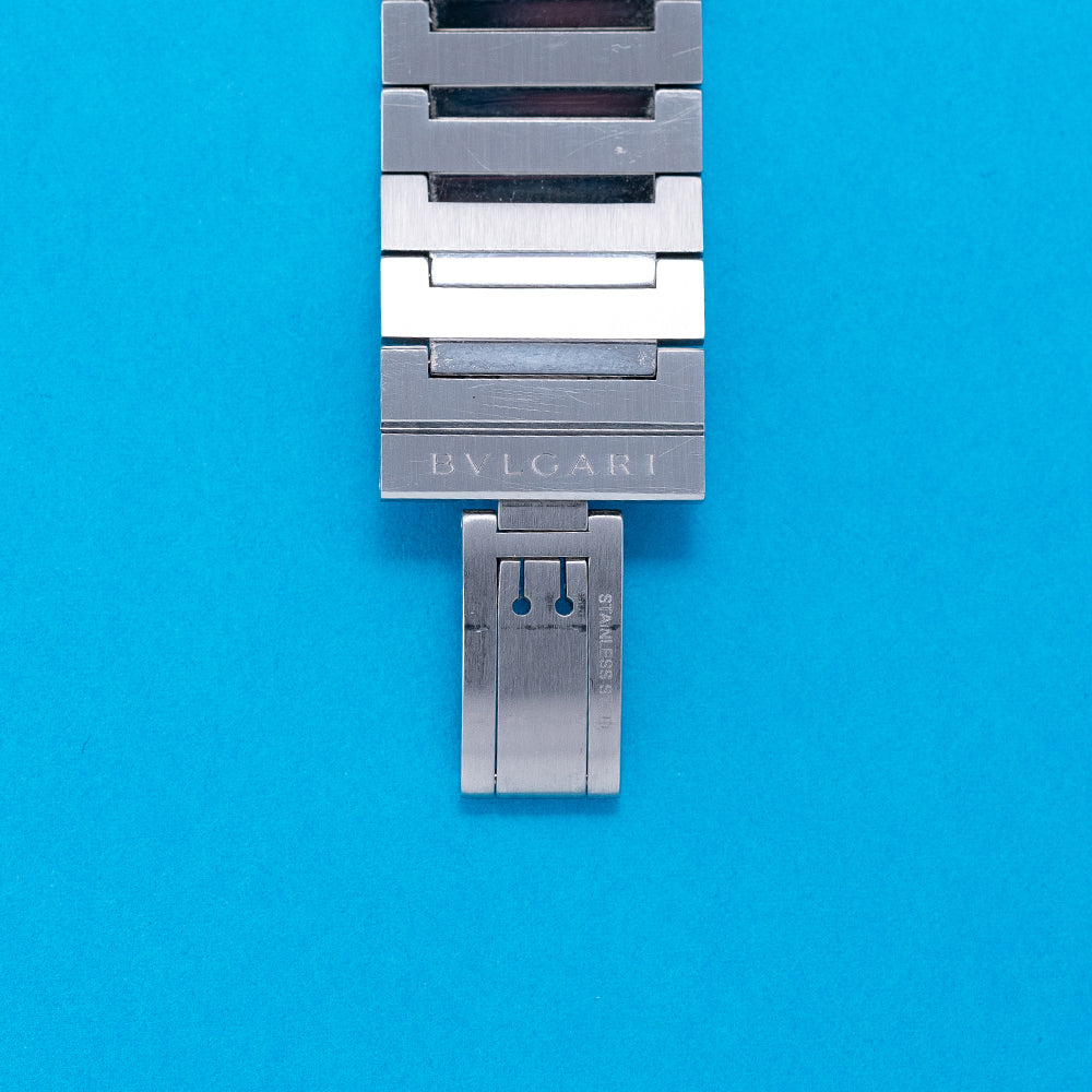 This watch is sold with its original Bulgari box and Bulgari paperwork. The watch comes paired with its original integrated satin-polished 29.5mm stainless steel bracelet, a signed hidden push-button released deployment clasp and an additional 29.5mm leather strap in the box, the bracelet will fit up to a 7inch wrist. The watch is from September 2020 and is sold in worn condition, but overall fair condition as you can see, a full case and bracelet refurb can be provided at an additional cost. The watch comes with our 12-Months Warranty.