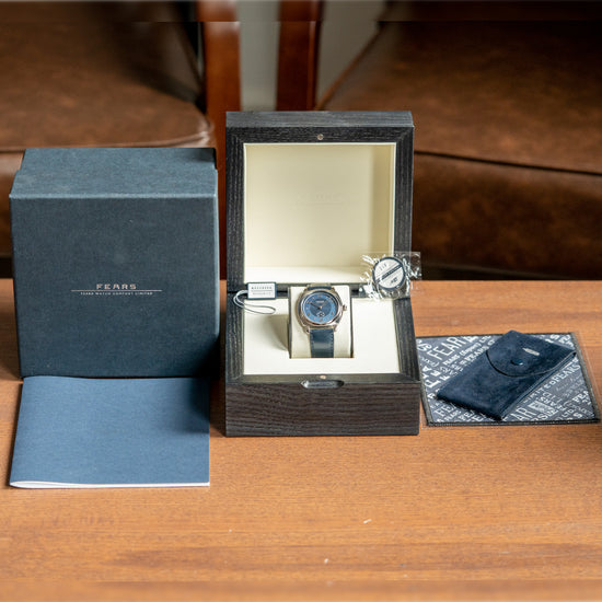 This watch is sold with its original Fears bespoke wooden presentation box and paperwork. It comes paired on its original 20mm Fears strap with its signed buckle. The watch is from September 2020 and is sold in worn but fair condition, as you can see. The watch comes with our 12-Months NON-Waterproof Warranty.